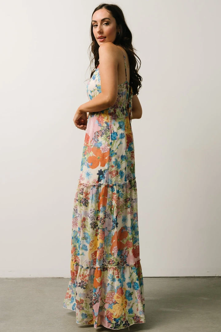 AK Dresses Suzanna Tiered Maxi Dress | Ivory + Multi Floral