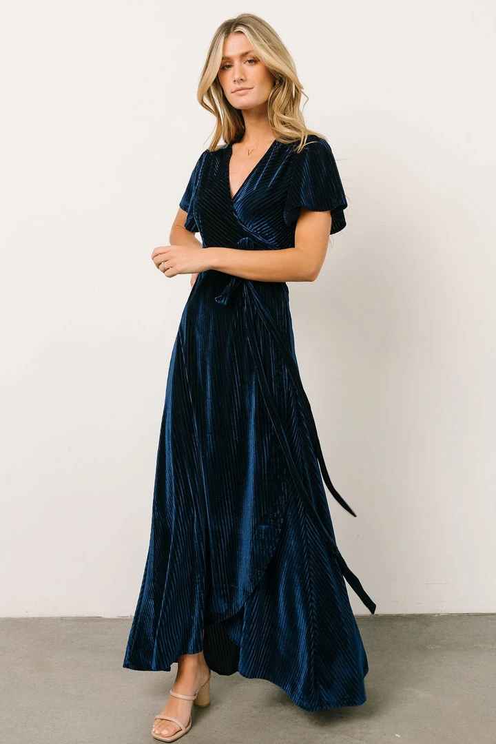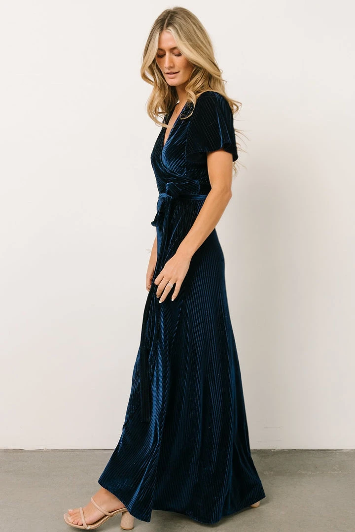 BB Custom Andi Ribbed Velvet Wrap Dress | Navy