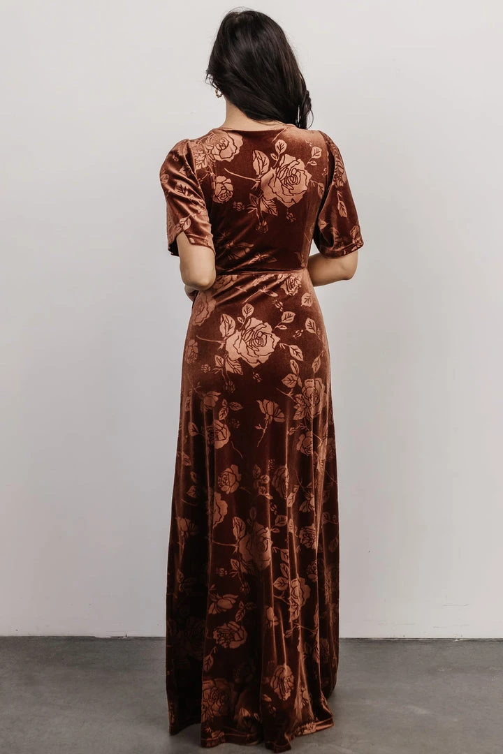 BB Custom Danielle Embossed Velvet Maxi Dress | Bronze