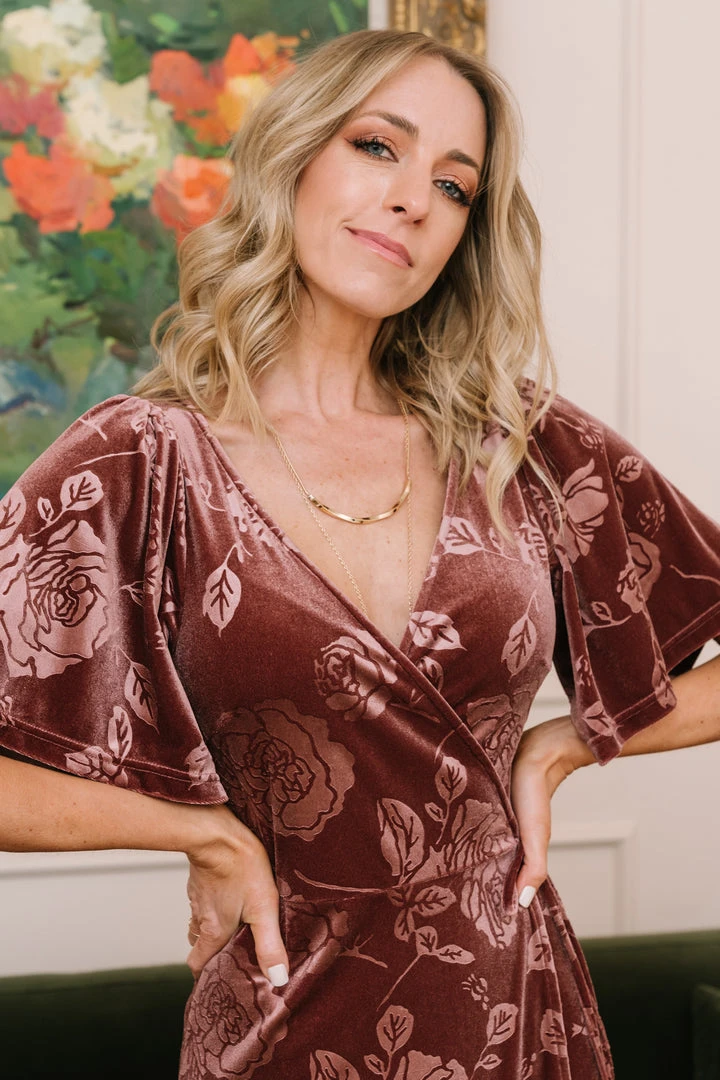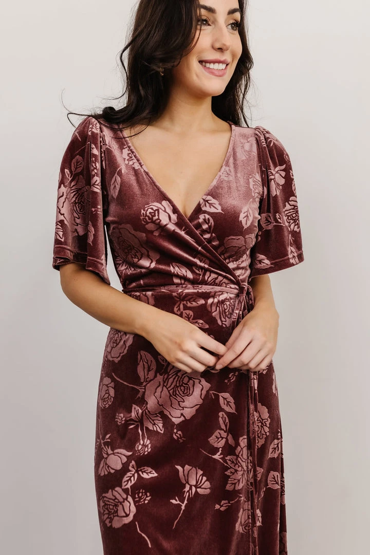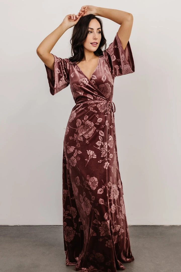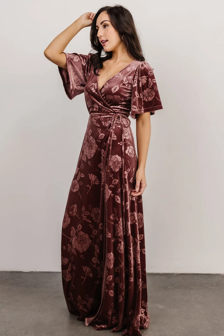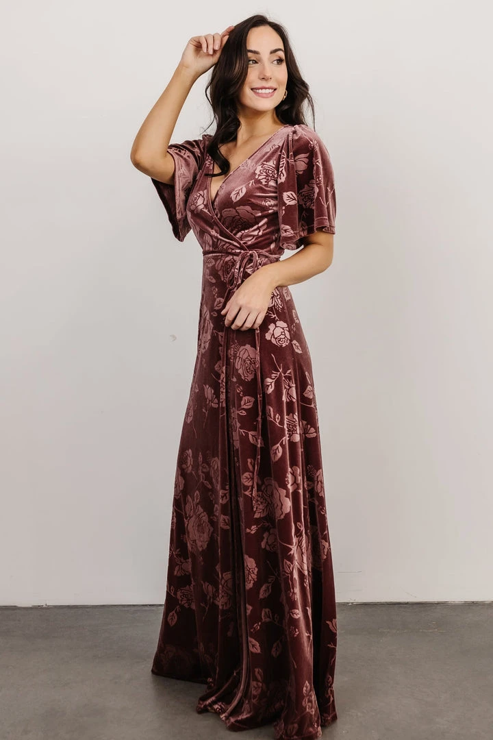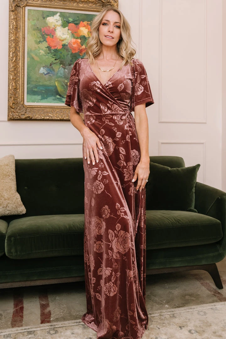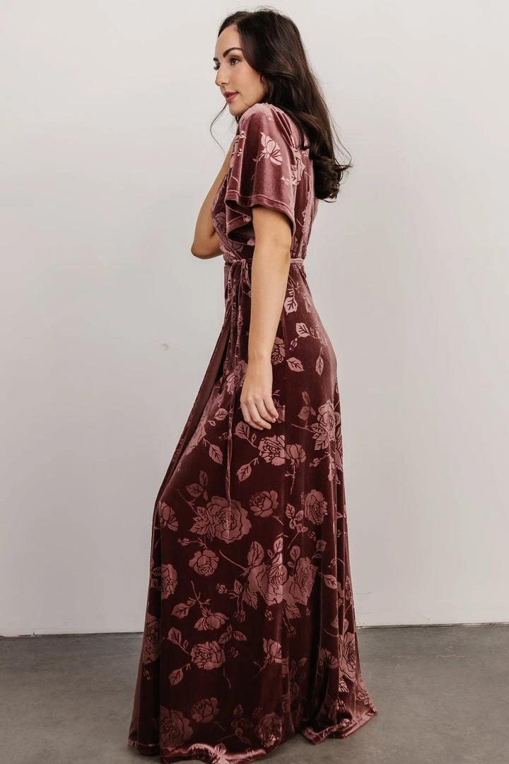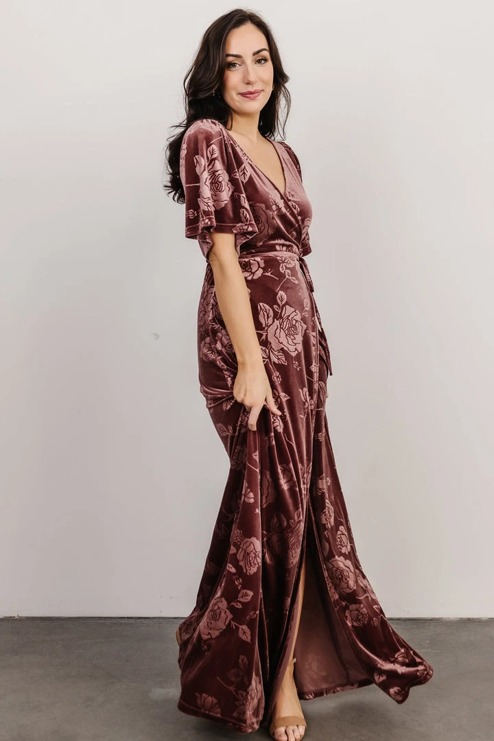 BB Custom Danielle Embossed Velvet Maxi Dress | Dusty Plum