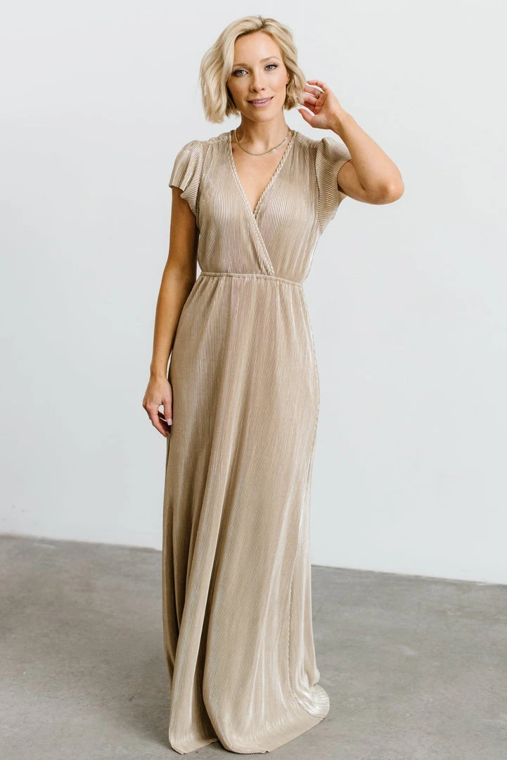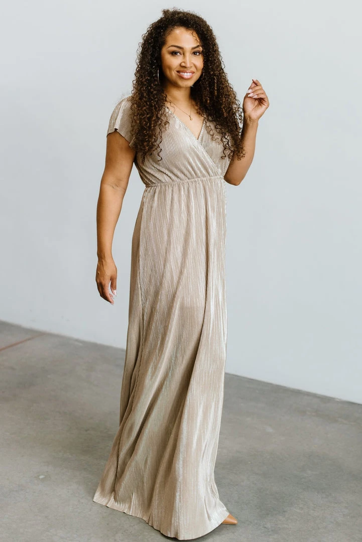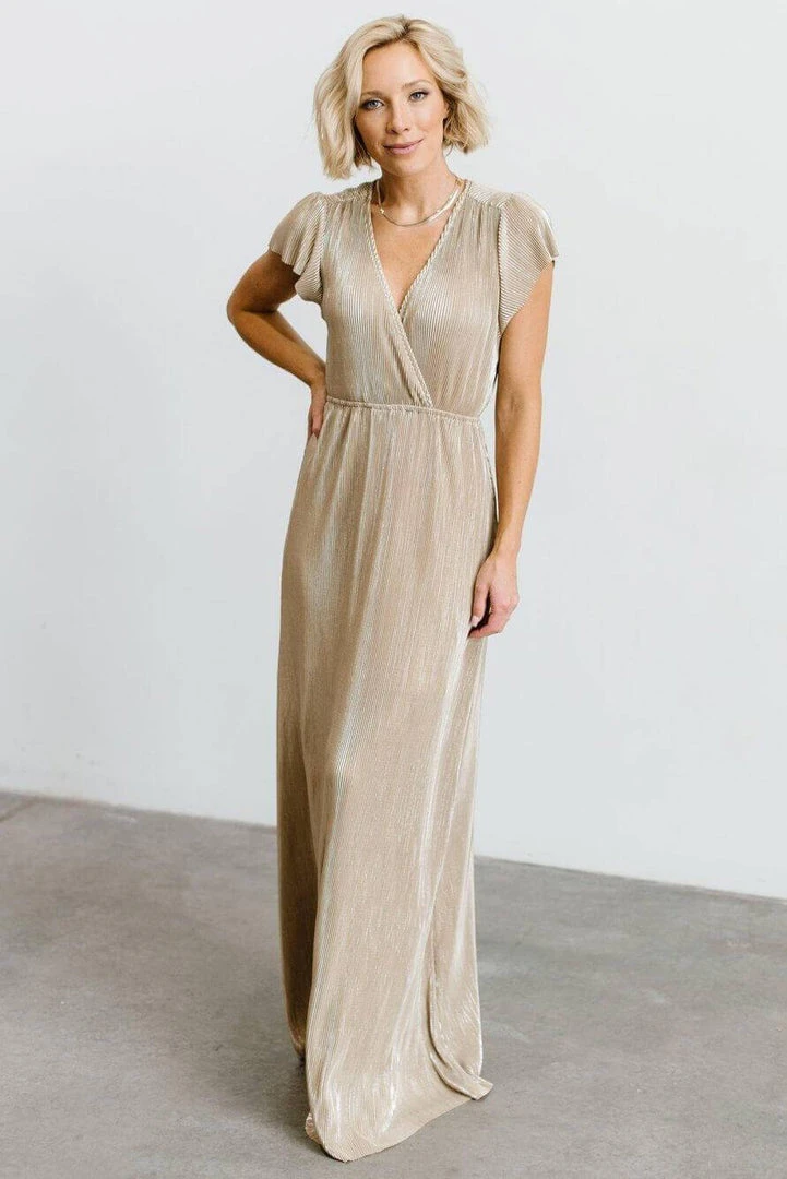 BB Custom Dresses Athena Pleated Maxi Dress | Gold