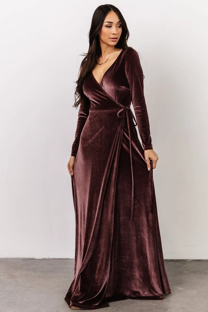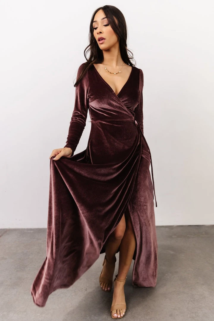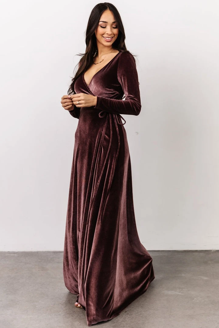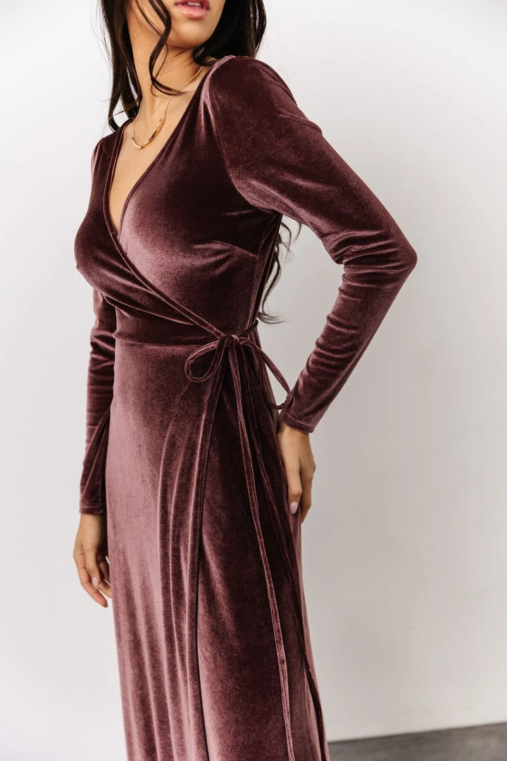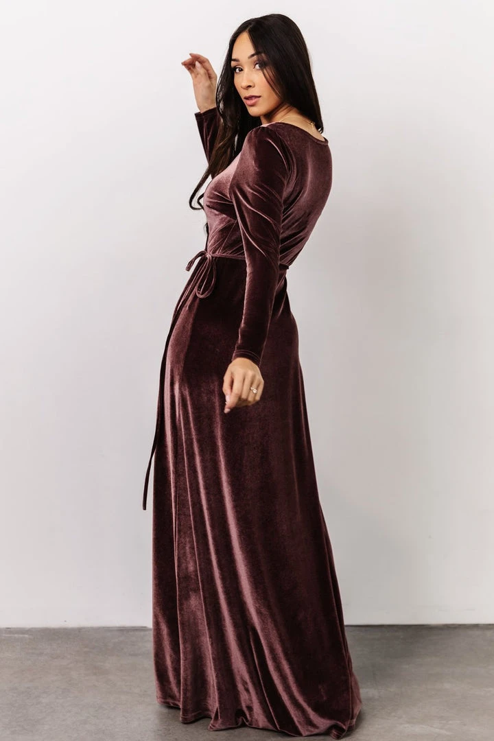 BB Custom Dresses Esmerelda Velvet Wrap Maxi Dress | Dusty Plum