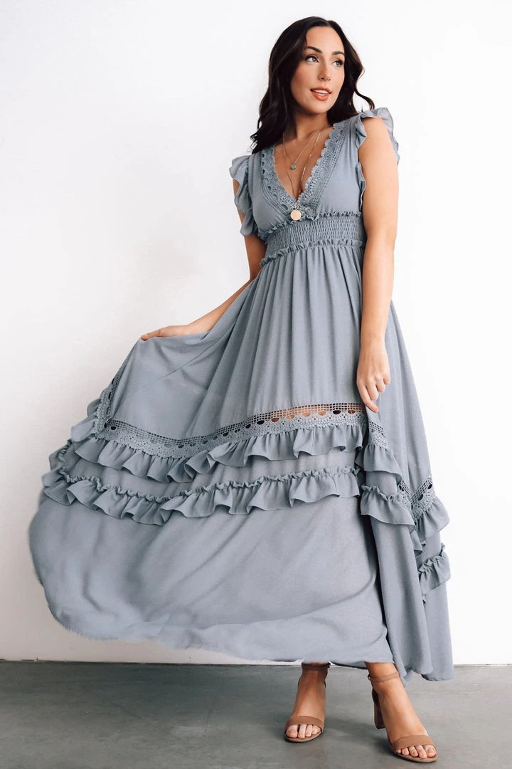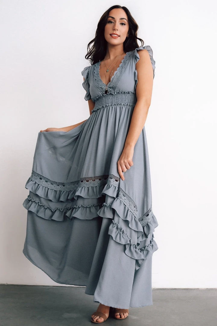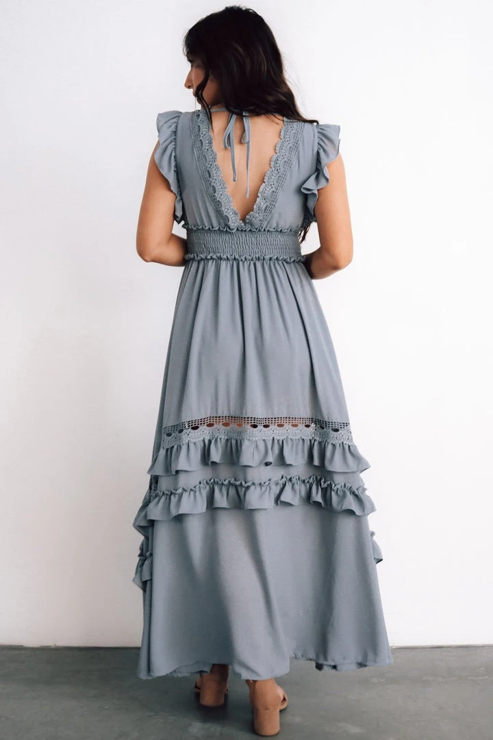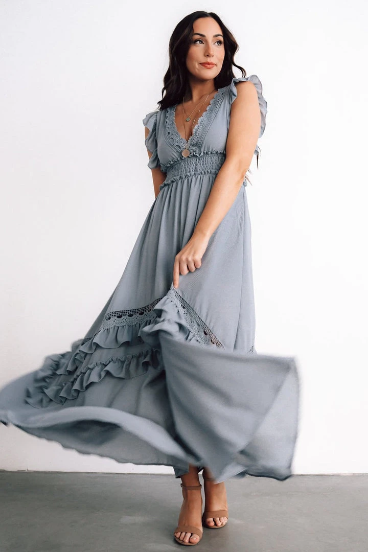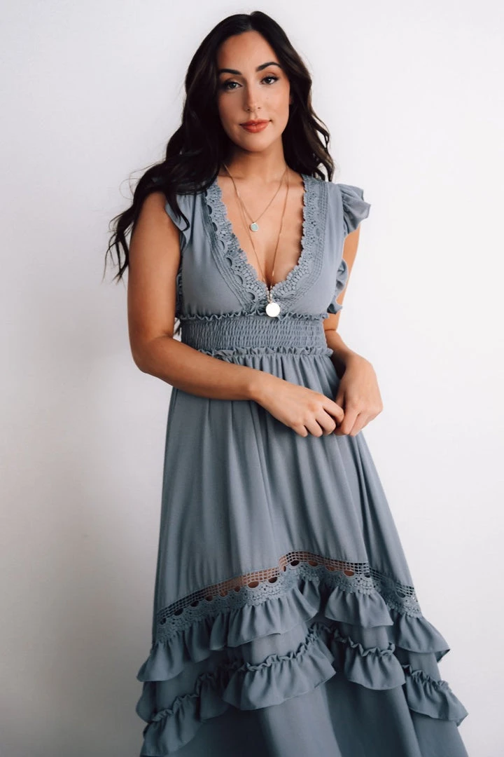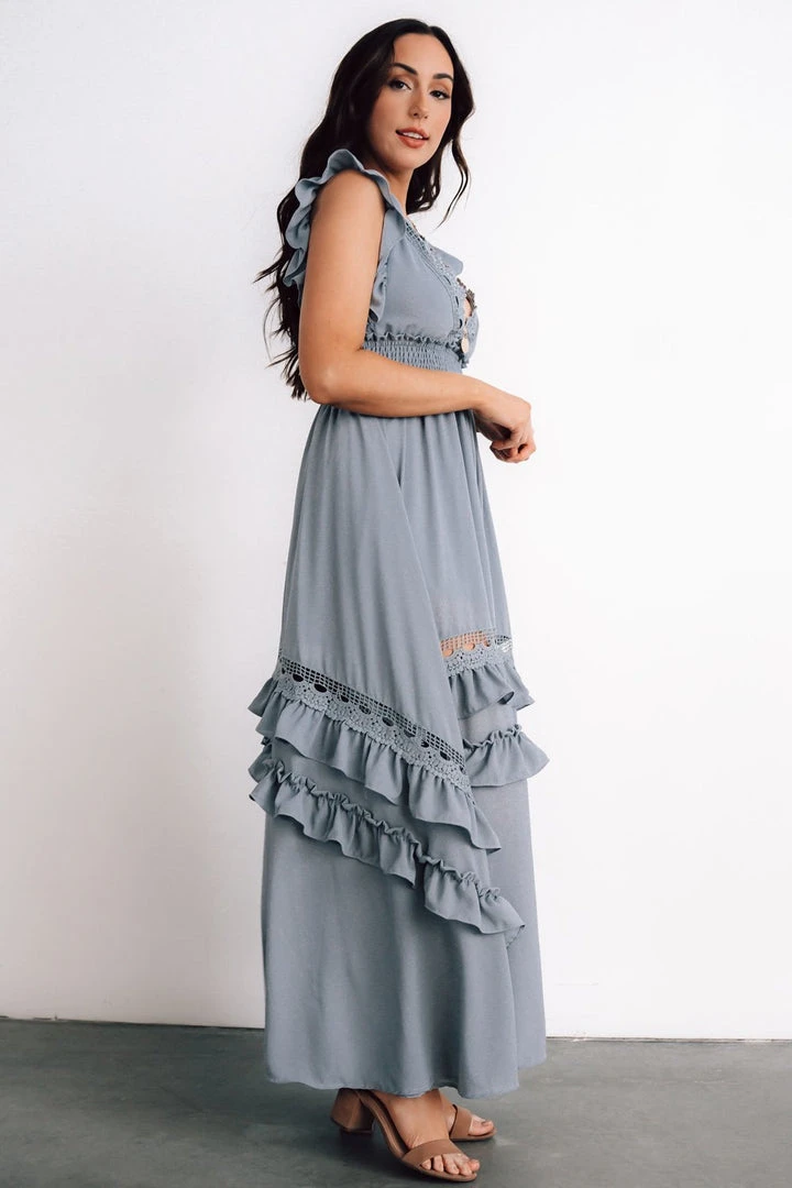 BB Custom Dresses Jasmine Ruffle Maxi Dress | Dusty Blue