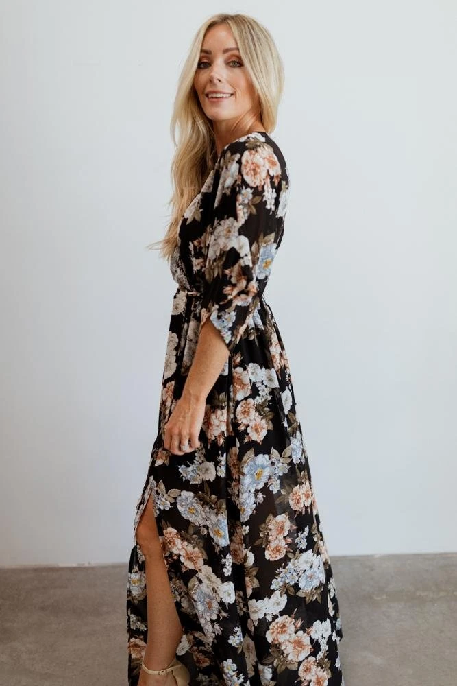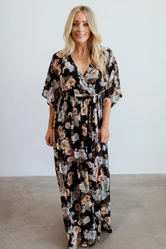 BB Custom Dresses Kia Kimono Maxi Dress | Black Floral