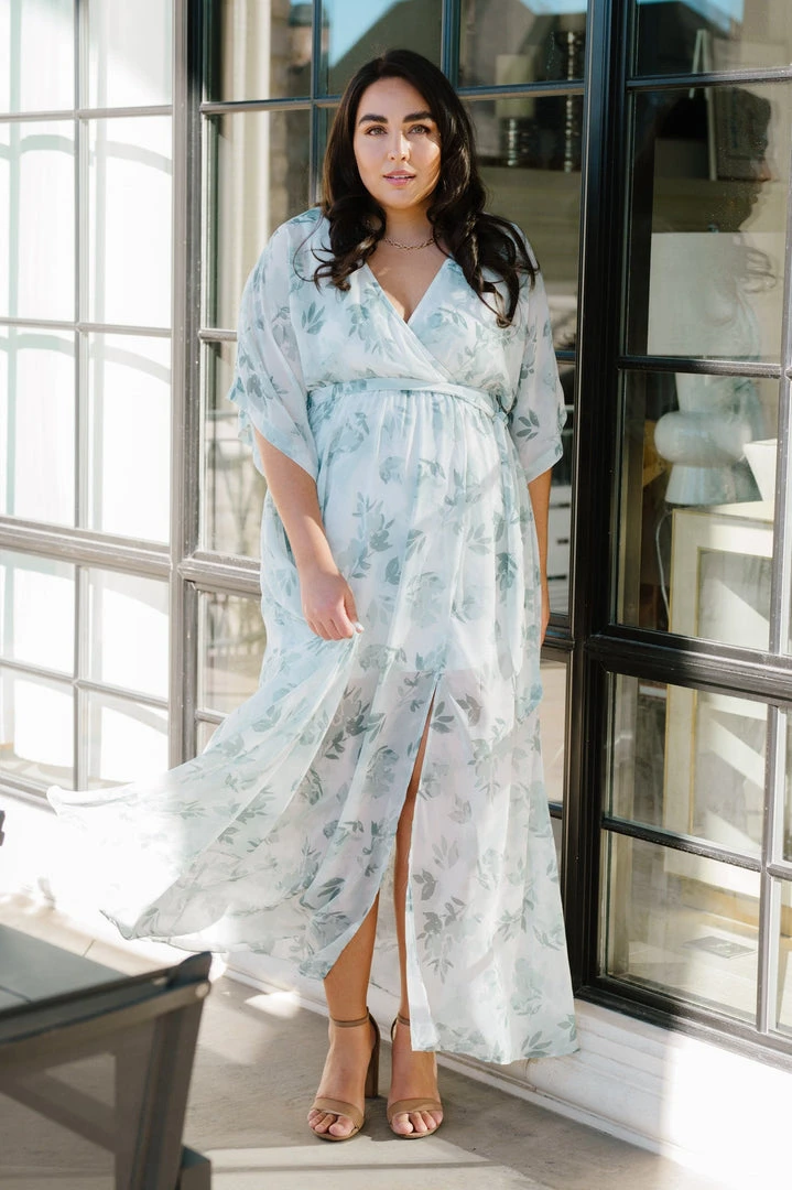 BB Custom Dresses Kia Kimono Maxi Dress | Sage Floral