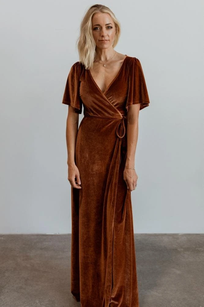 BB Custom Dresses Carmen Shimmer Maxi Dress | Rust