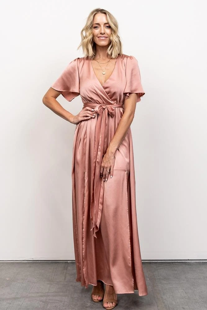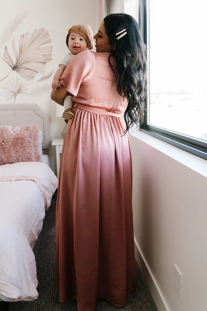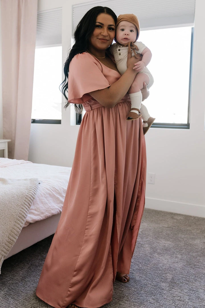 BB Custom Dresses Sicily Satin Maxi Dress | Blush