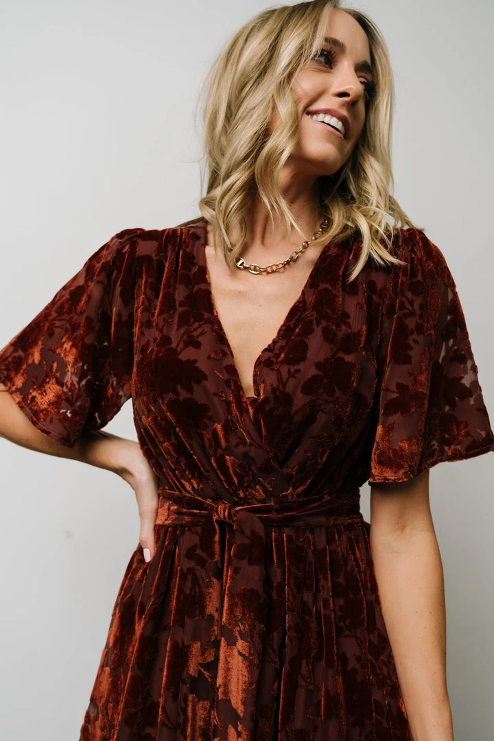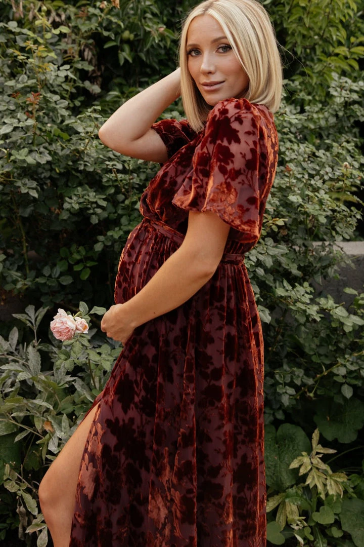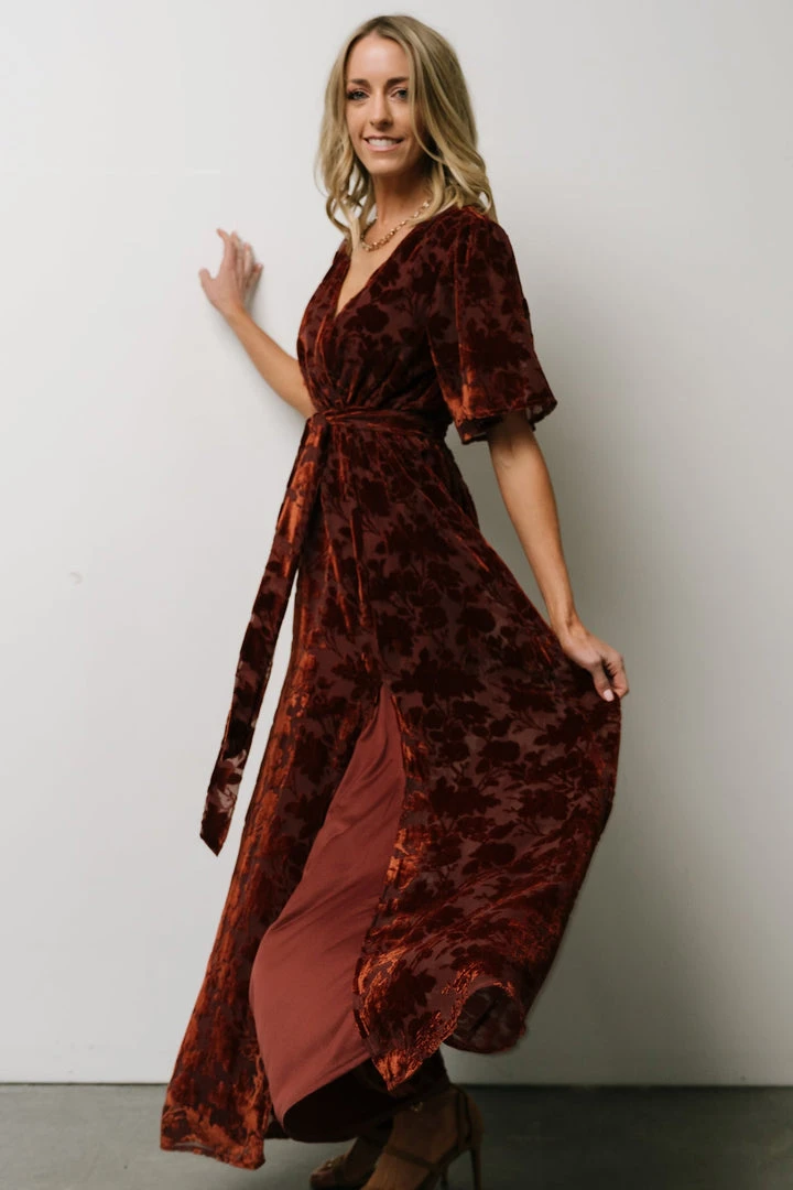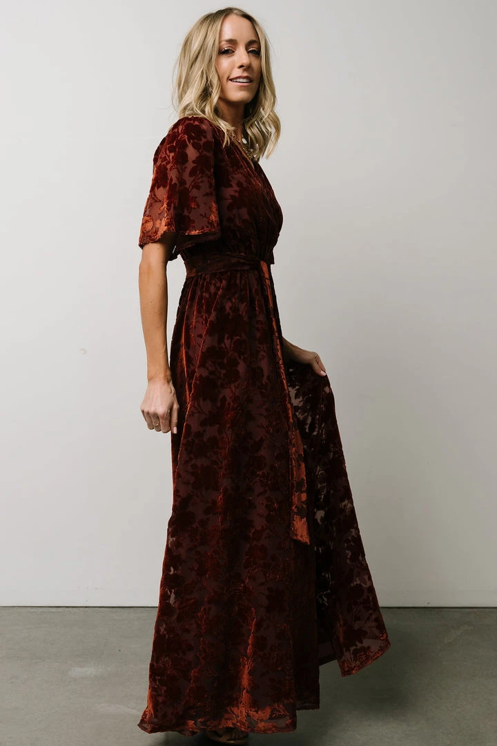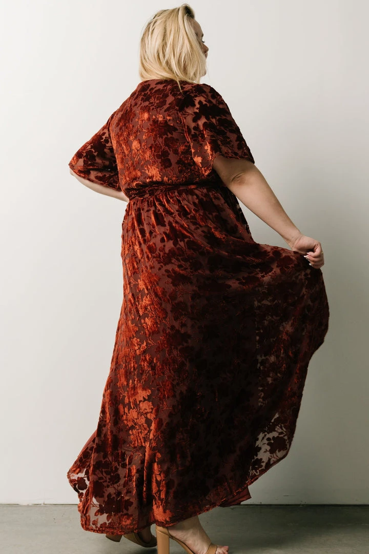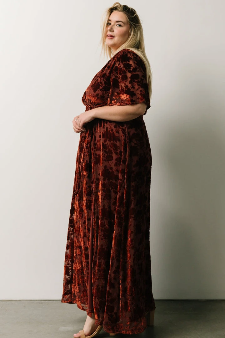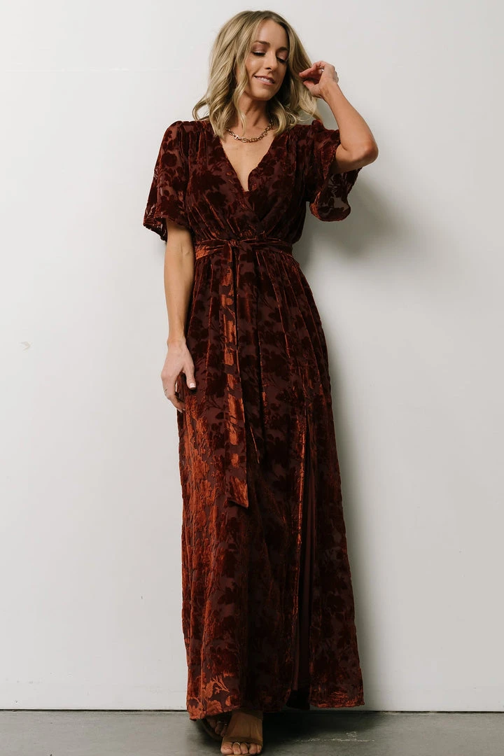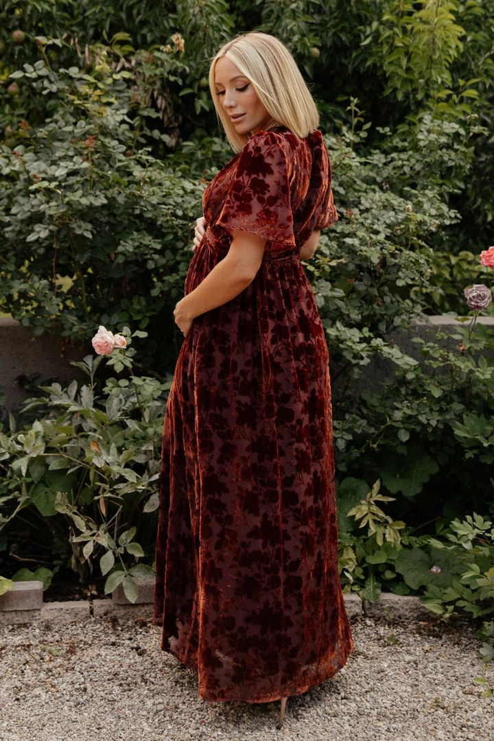 BB Custom Dresses Uma Velvet Maxi Dress | Copper Floral