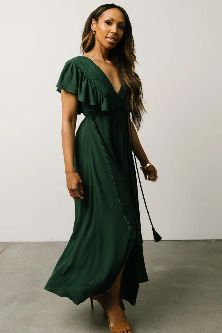 BB Custom Jennifer Deep V Maxi Dress | Dark Green