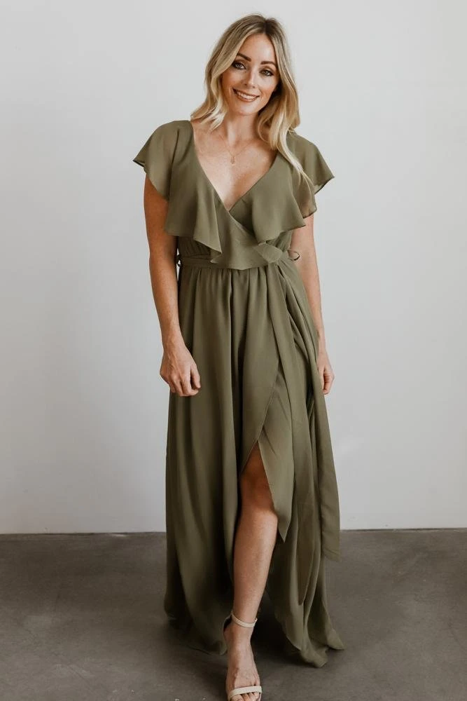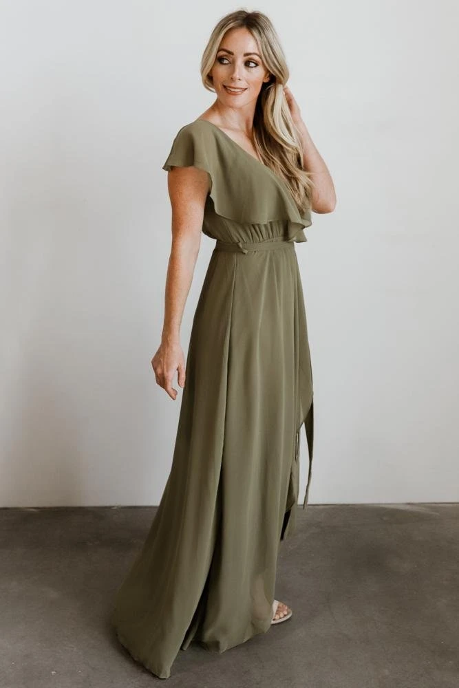 BB Custom Katya Ruffle Maxi Dress | Dusty Olive