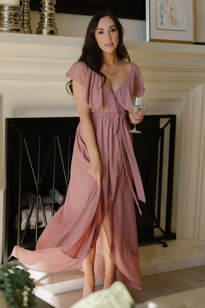 BB Custom Katya Ruffle Maxi Dress | Dusty Pink Dresses
