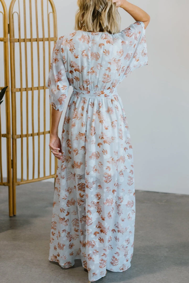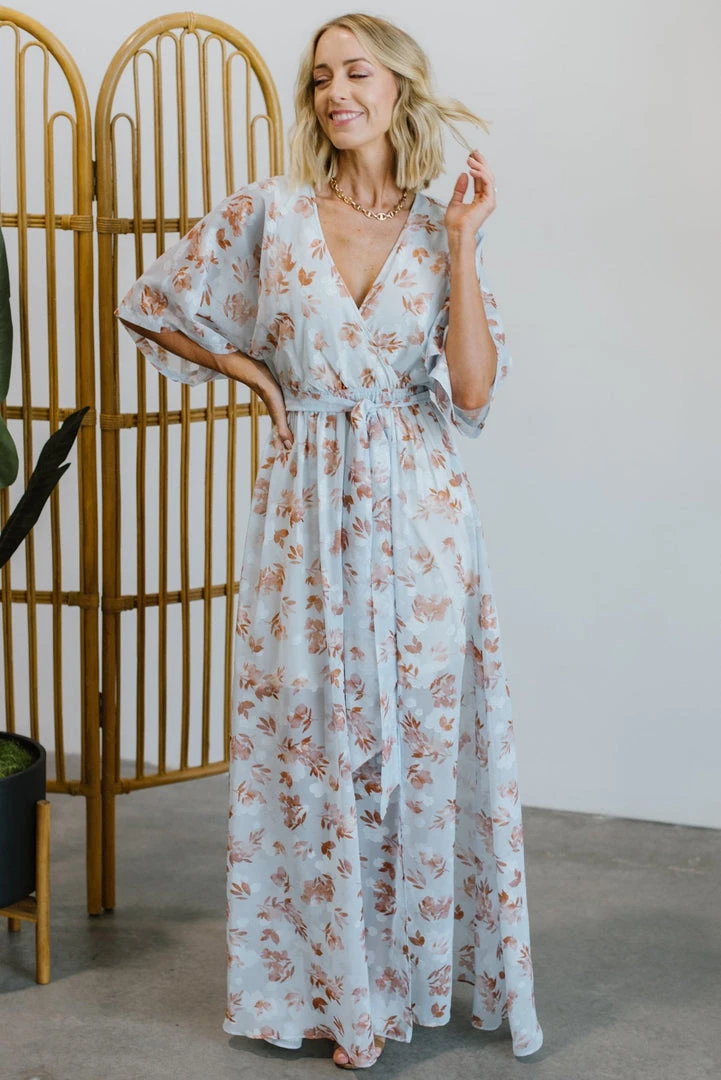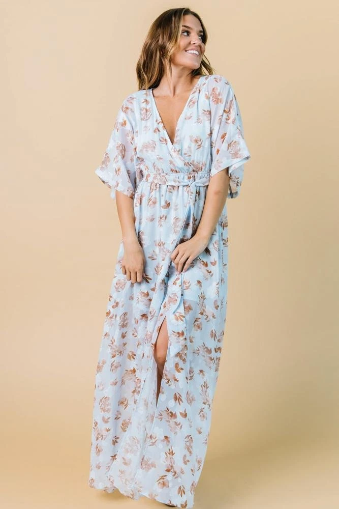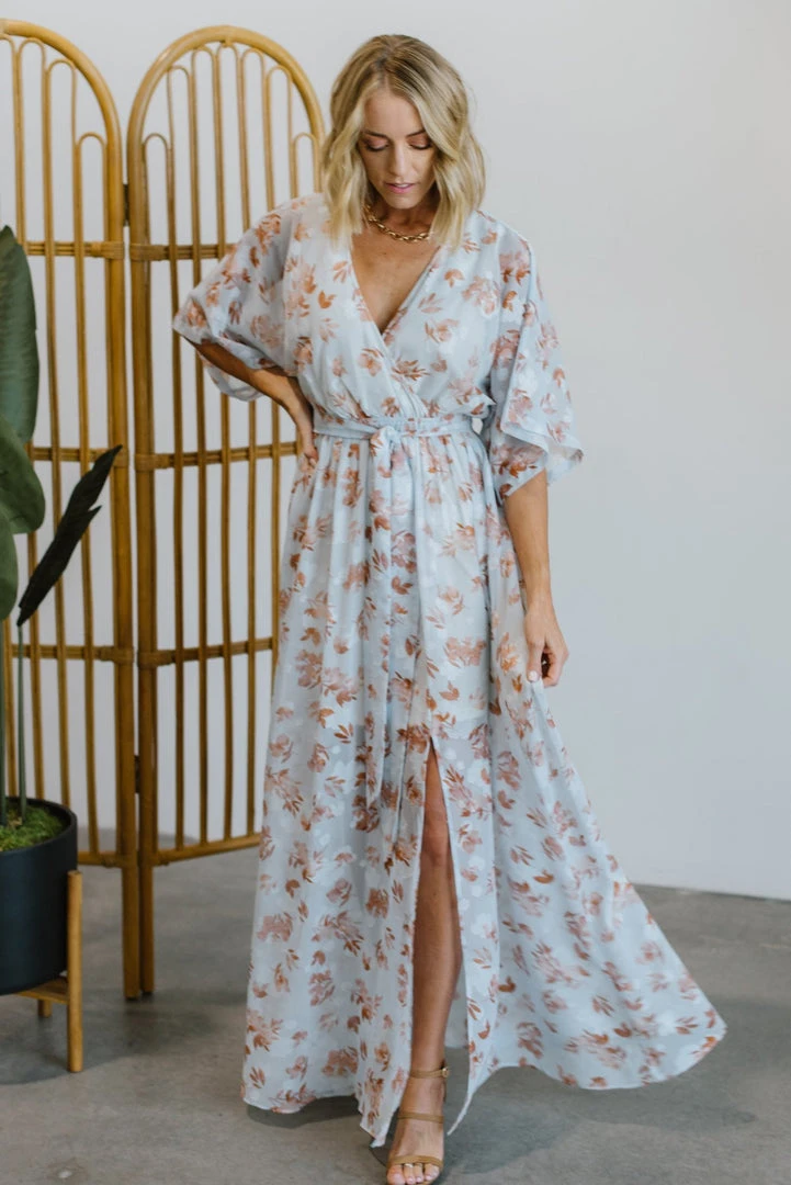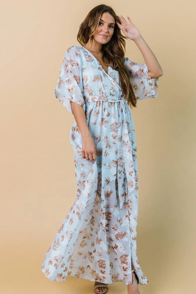 BB Custom Luca Jacquard Kimono Maxi Dress | Blue Camel