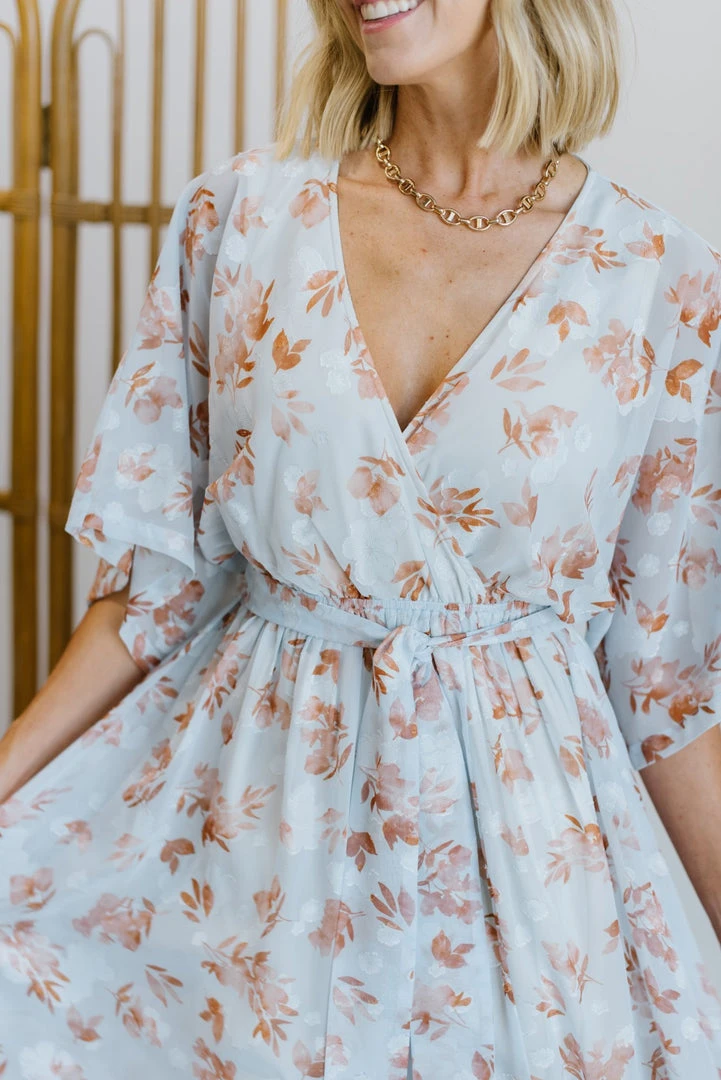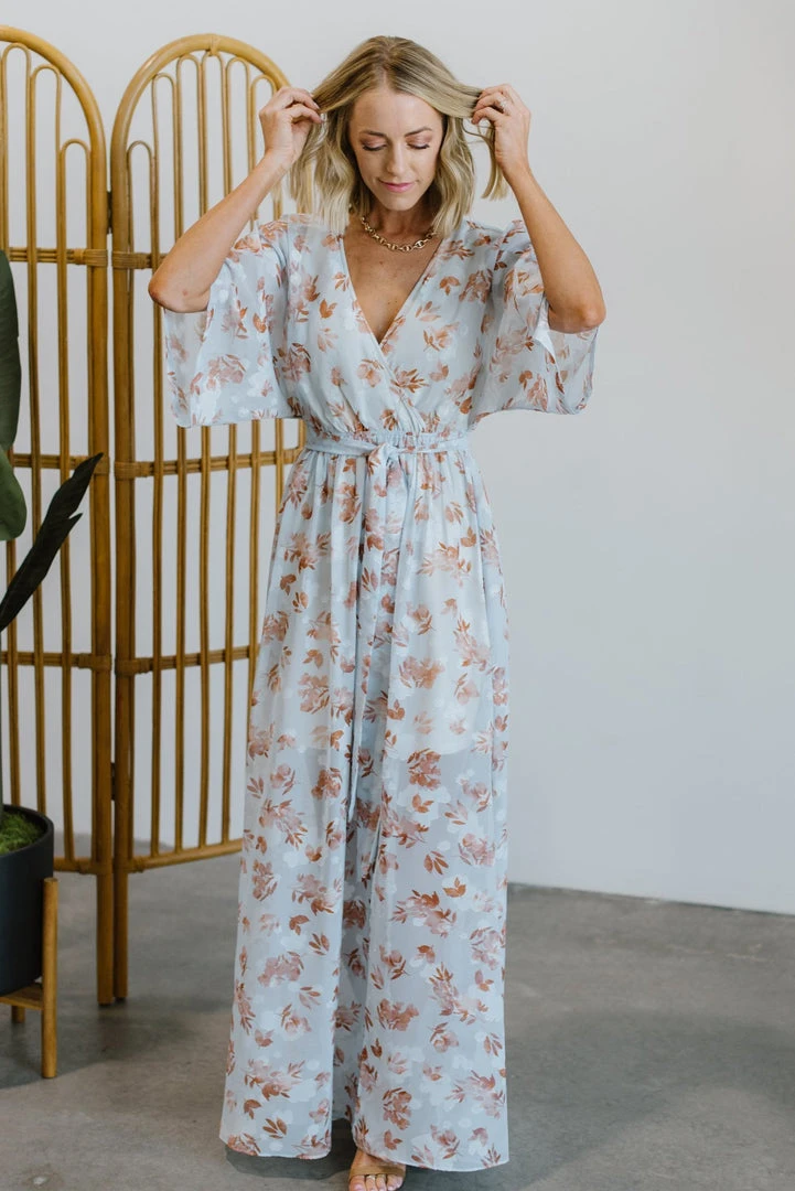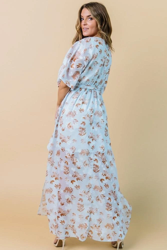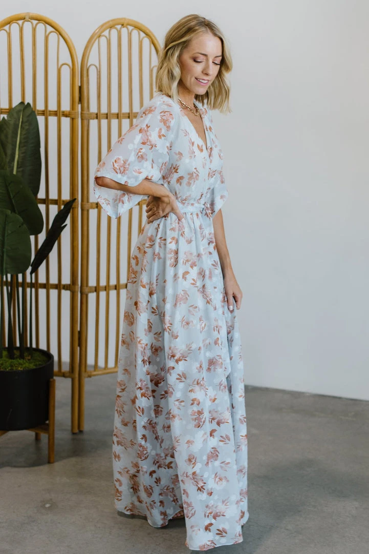 BB Custom Luca Jacquard Kimono Maxi Dress | Blue Camel