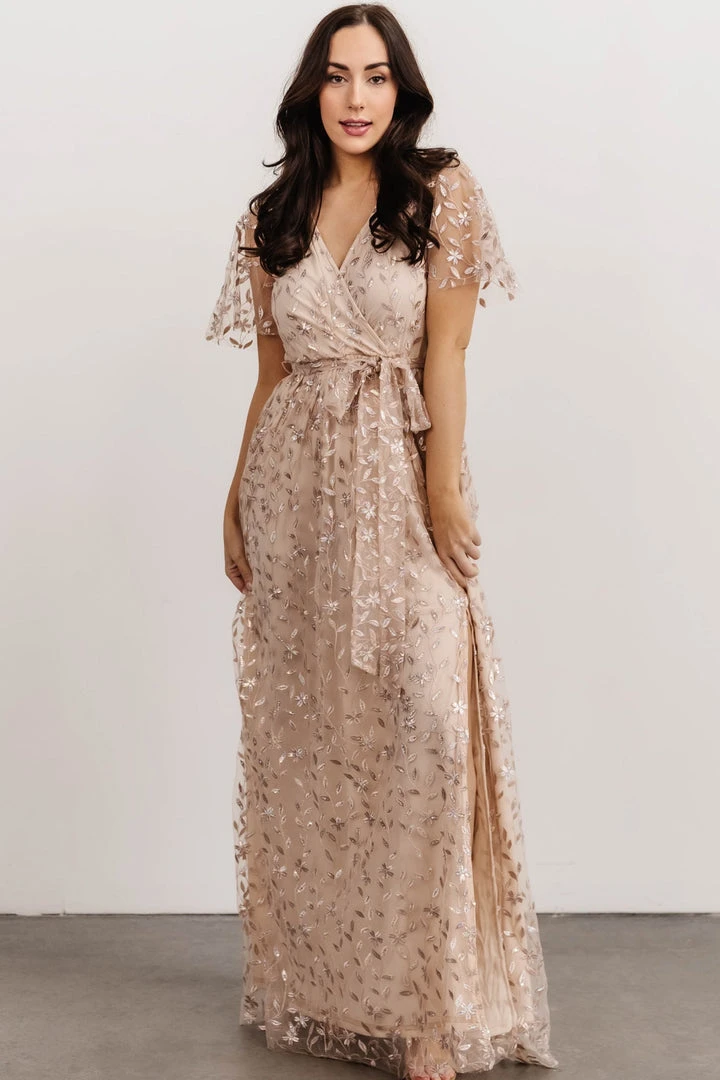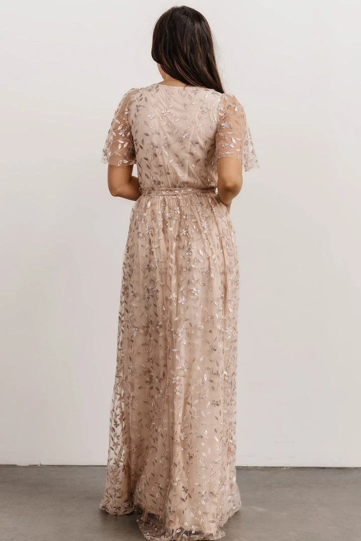 Be the first to review “BB Custom Marseille Embossed Maxi Dress | Sequin Champagne” Cancel reply