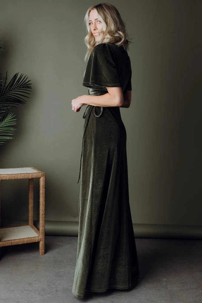 BB Custom Meghan Velvet Wrap Maxi Dress | Olive