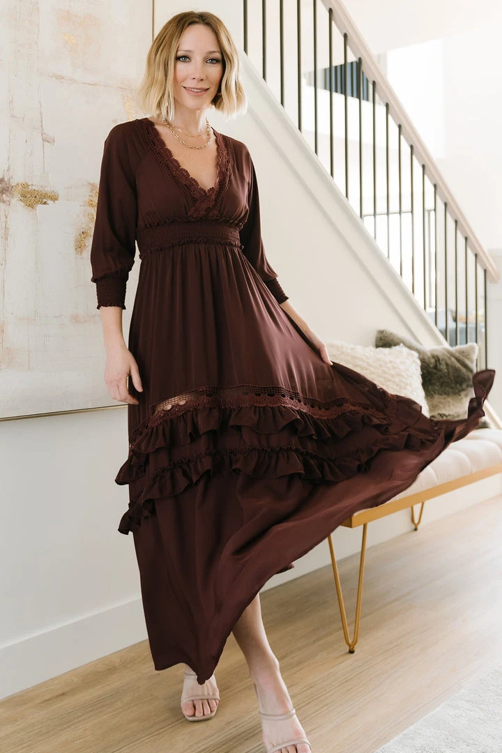 BB Custom Pippa Ruffle Maxi Dress | Raisin
