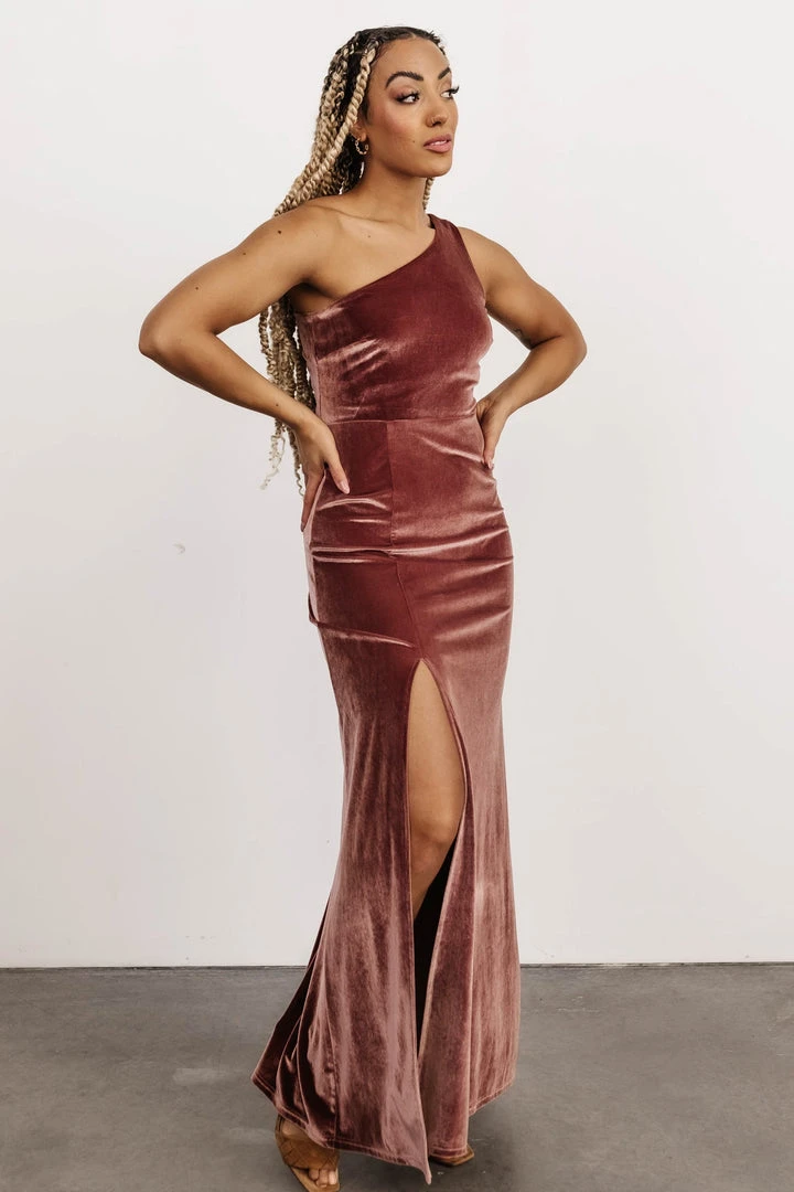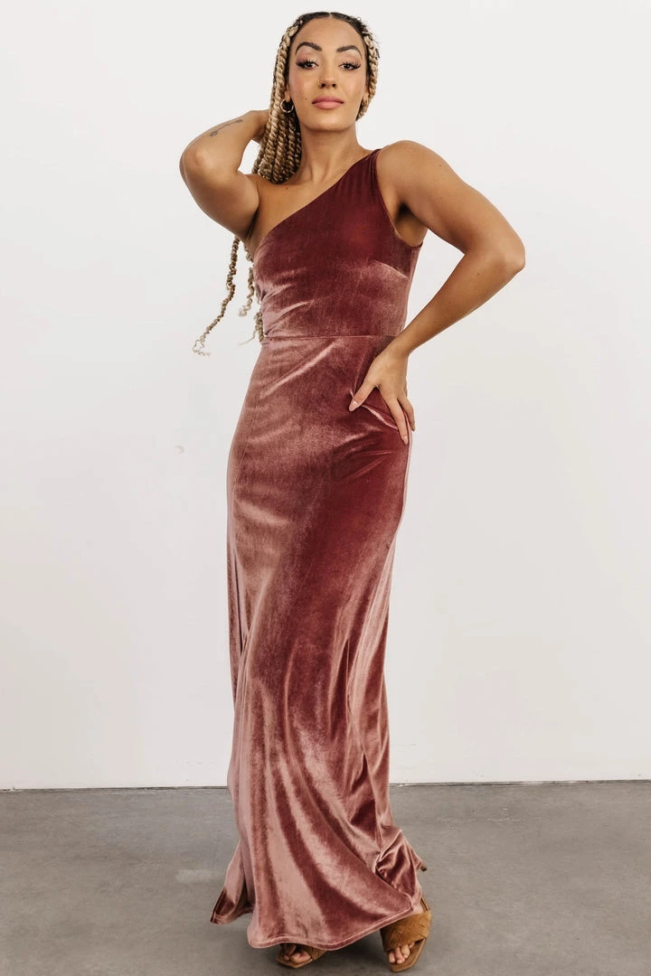 BB Custom Tatiana Velvet One Shoulder Maxi Dress | Rose