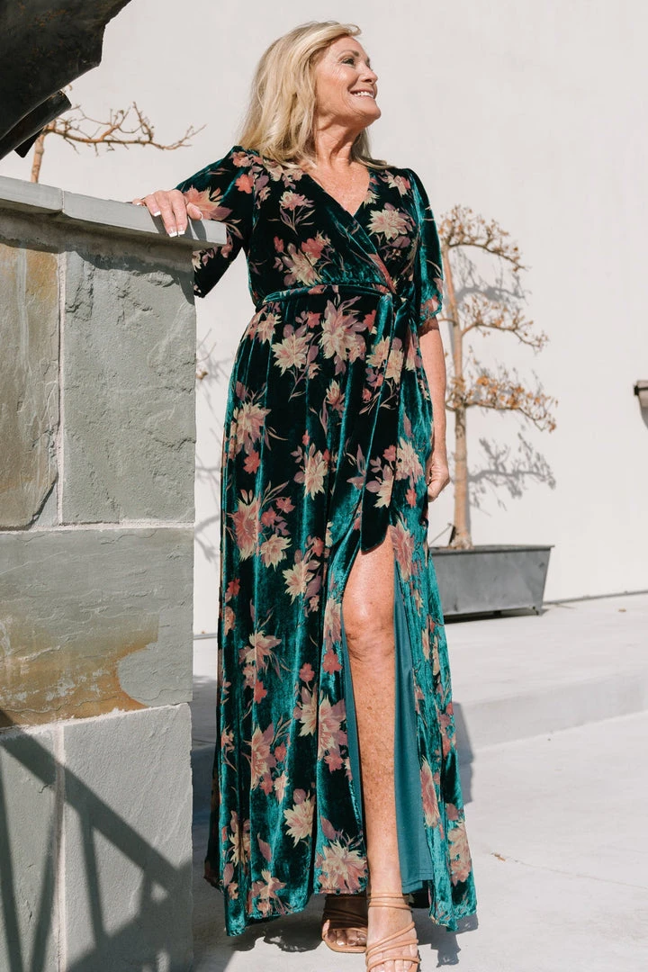 BB Custom Uma Velvet Maxi Dress | Jade Floral Dresses
