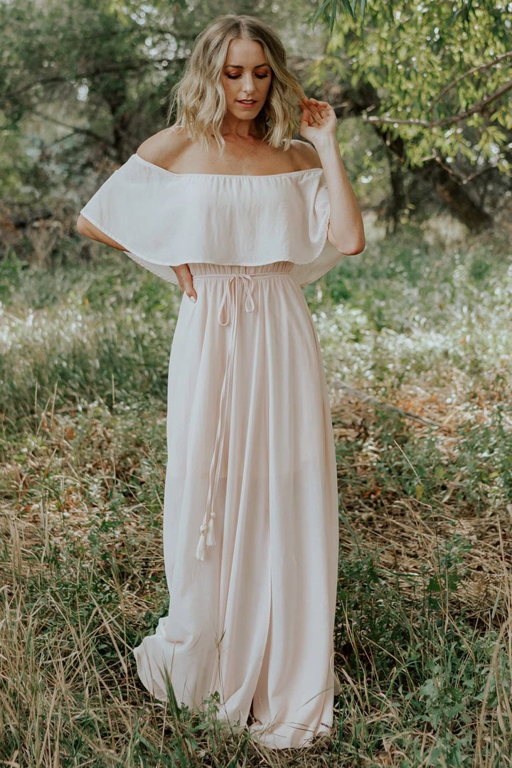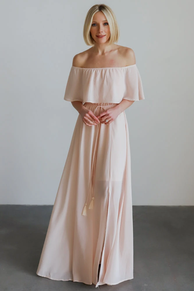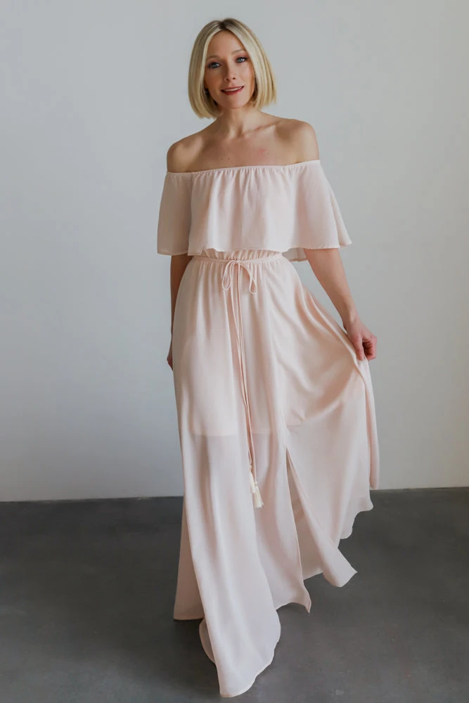 BB Custom Victoria Off Shoulder Maxi Dress | Blush