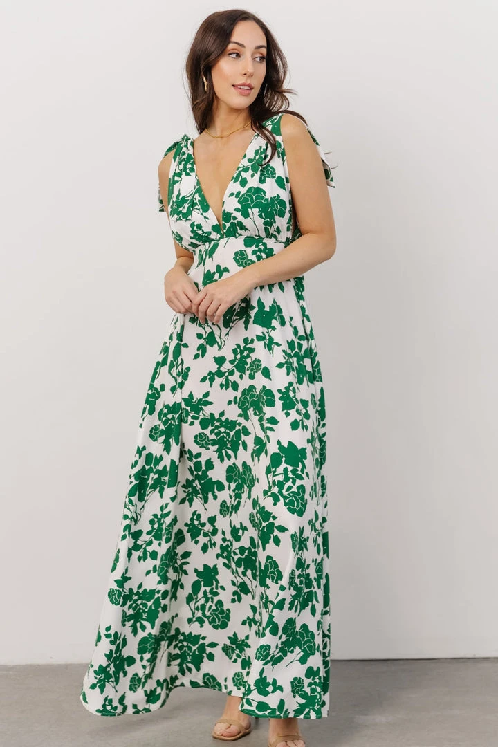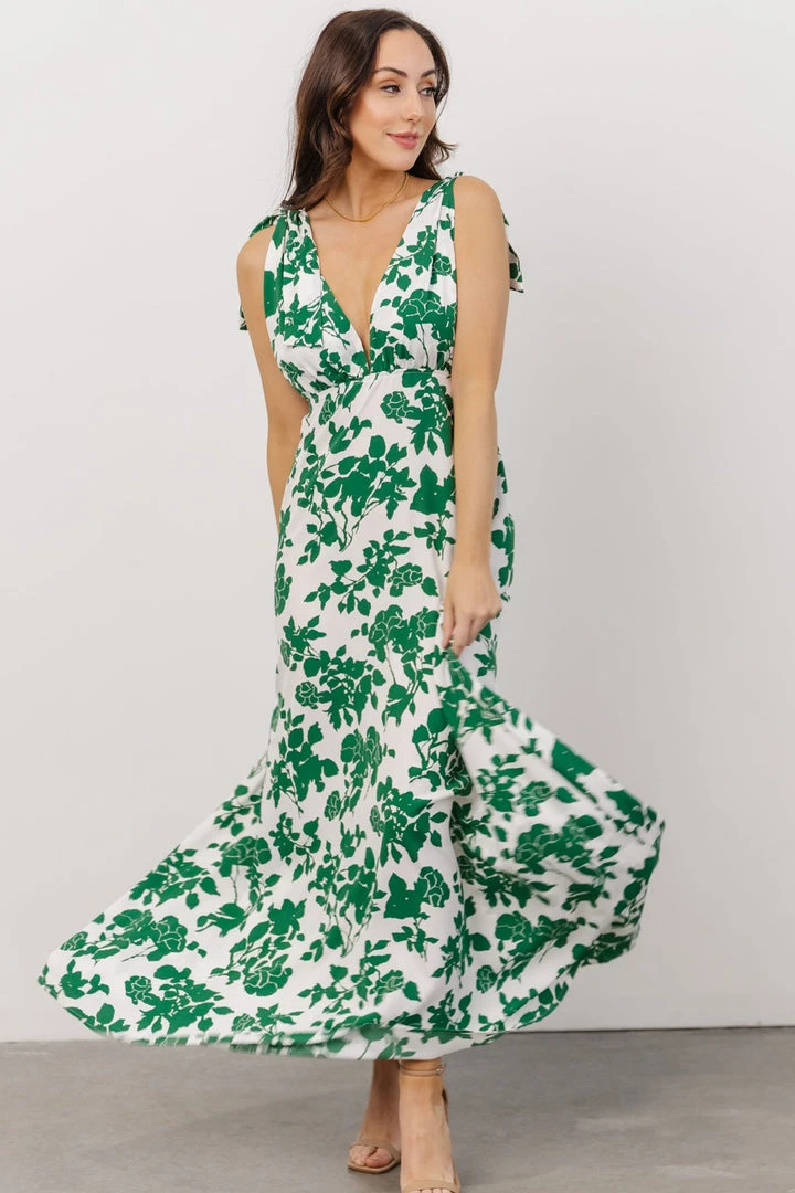 DD Dresses Everlee Tie Tank Maxi Dress | White + Green Floral