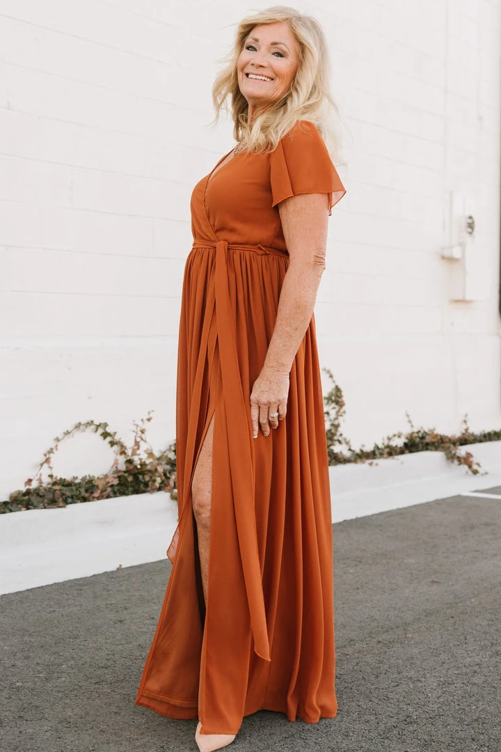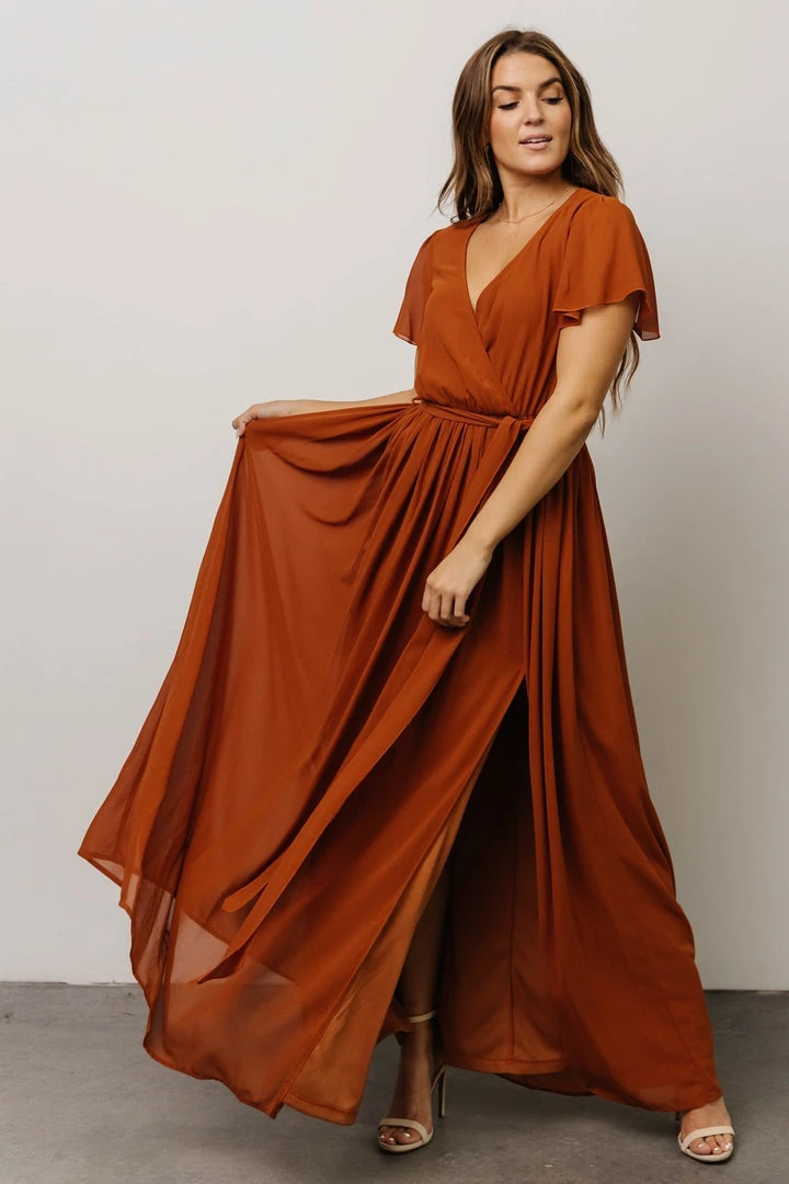 - High-quality chiffon material with solid nutmeg color throughoutÂ
