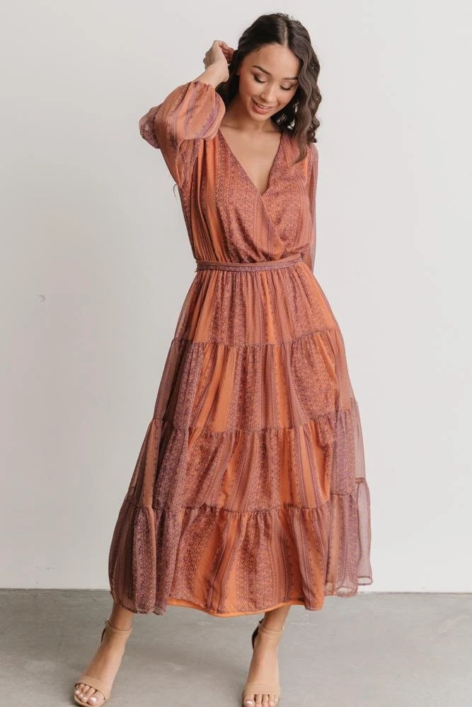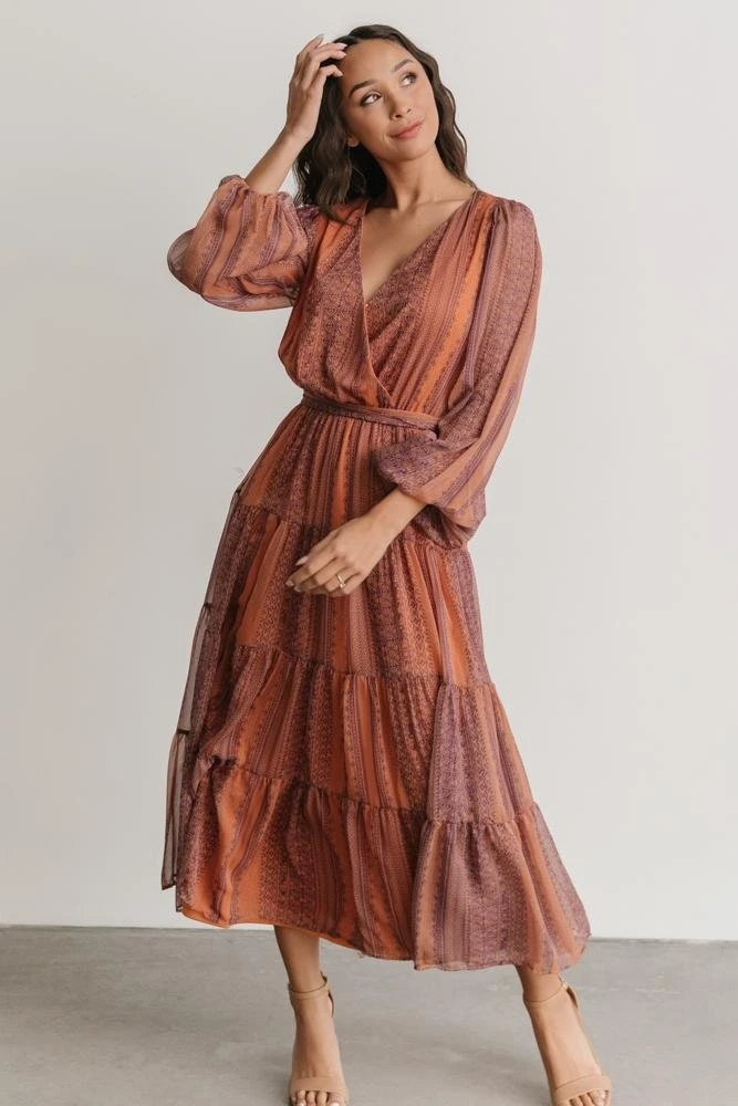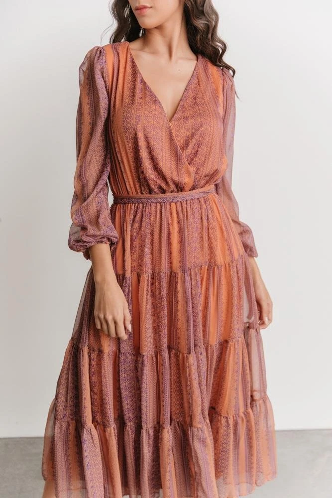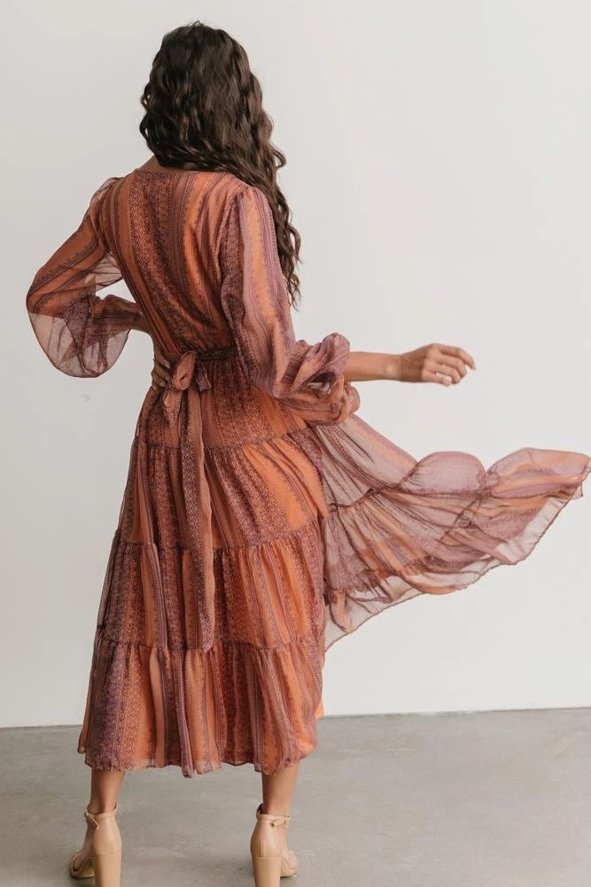 FT Ryker Tiered Midi Dress | Sunset Print Dresses