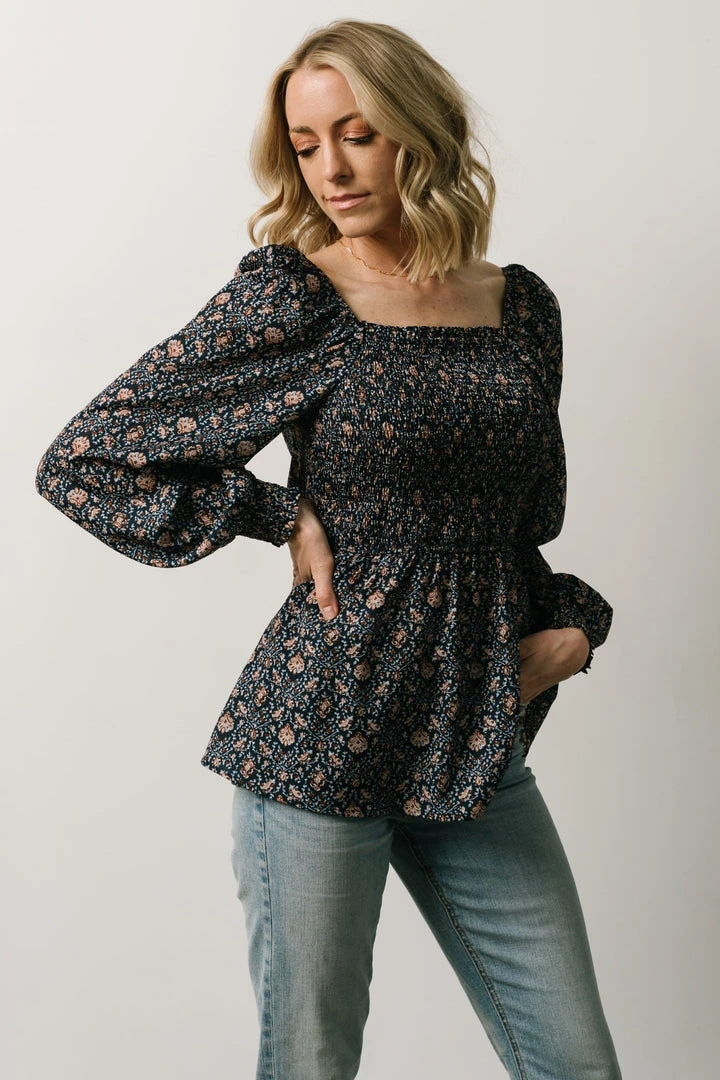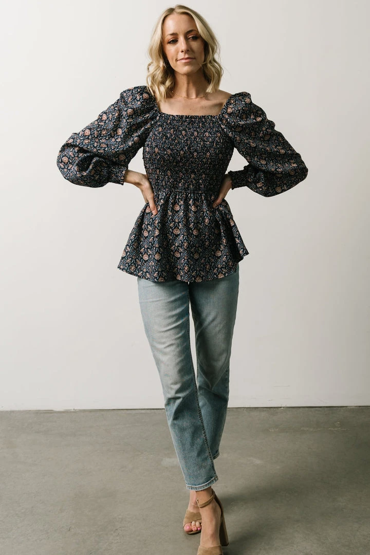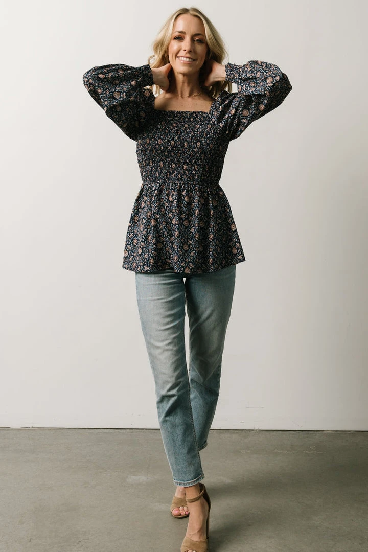 Be the first to review “HAY Ida Peasant Top | Navy Multi Floral” Cancel reply