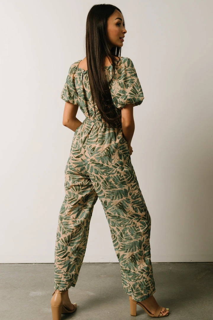 HAY Vacation Jane Smocked Jumpsuit | Sage Palm Print