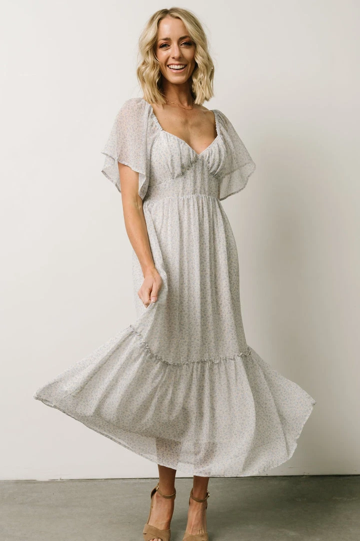 IL Dresses Patience Midi Dress | Dusty Blue + Off White Print