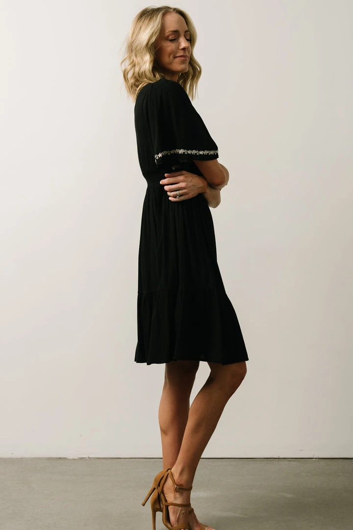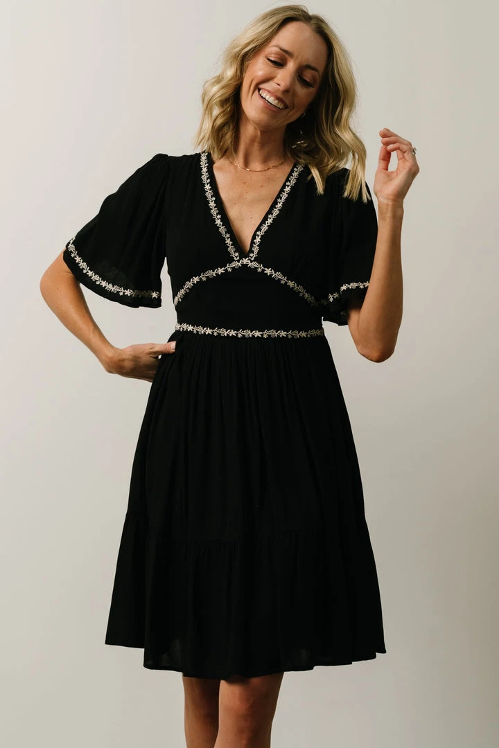IL Evania Embroidered Mini Dress | Black