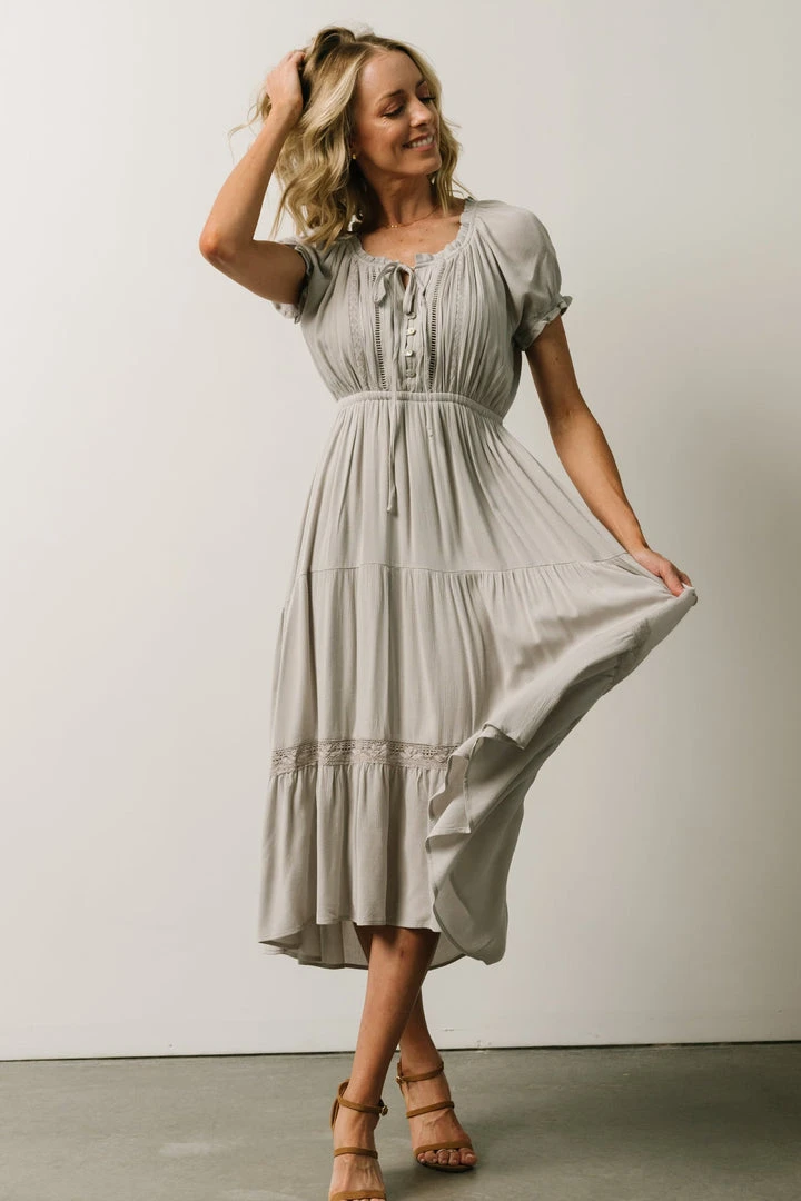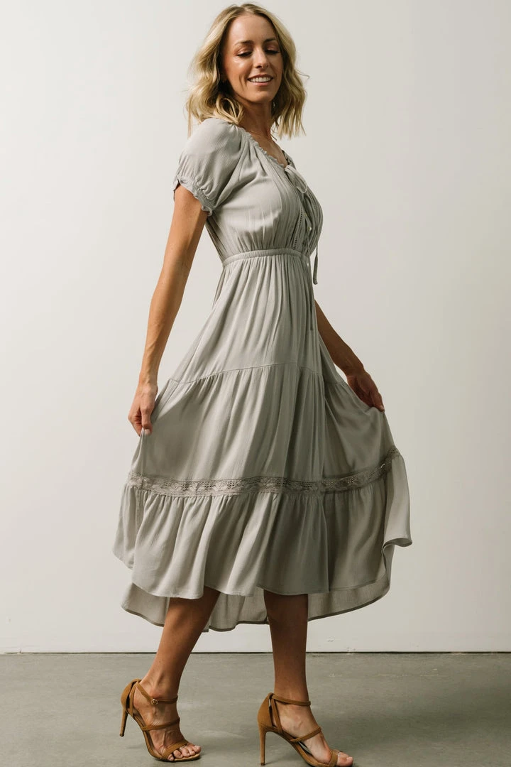 IL Greer Pintucked Midi Dress | Slate Gray Dresses