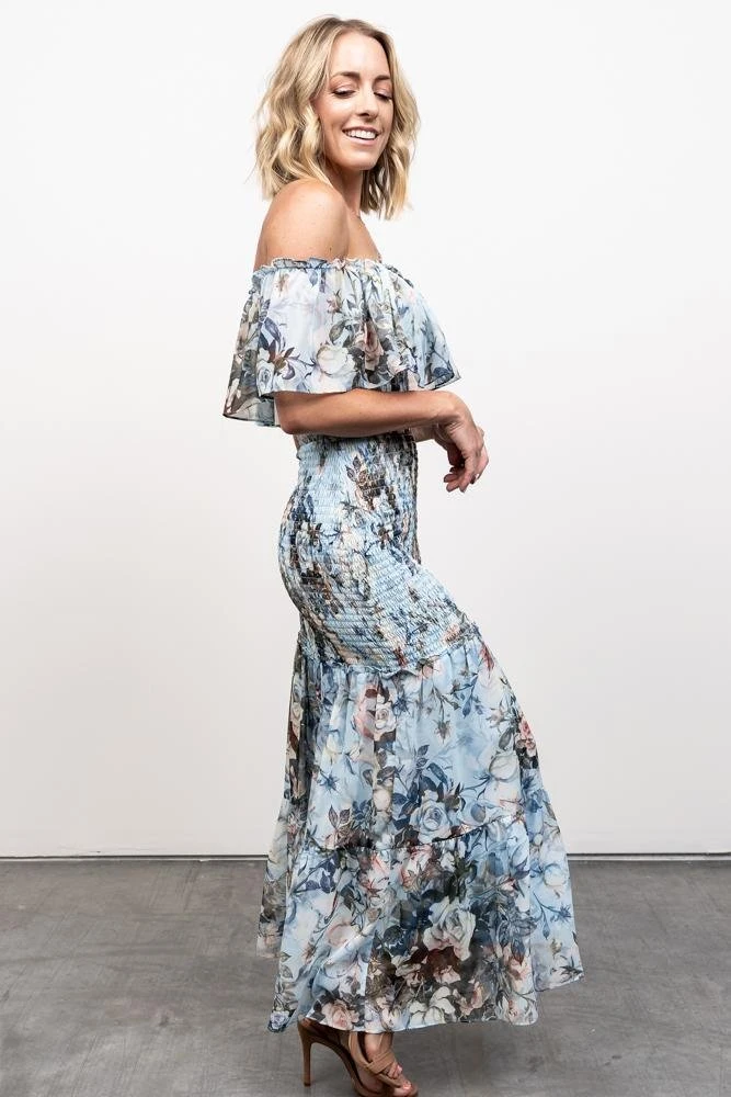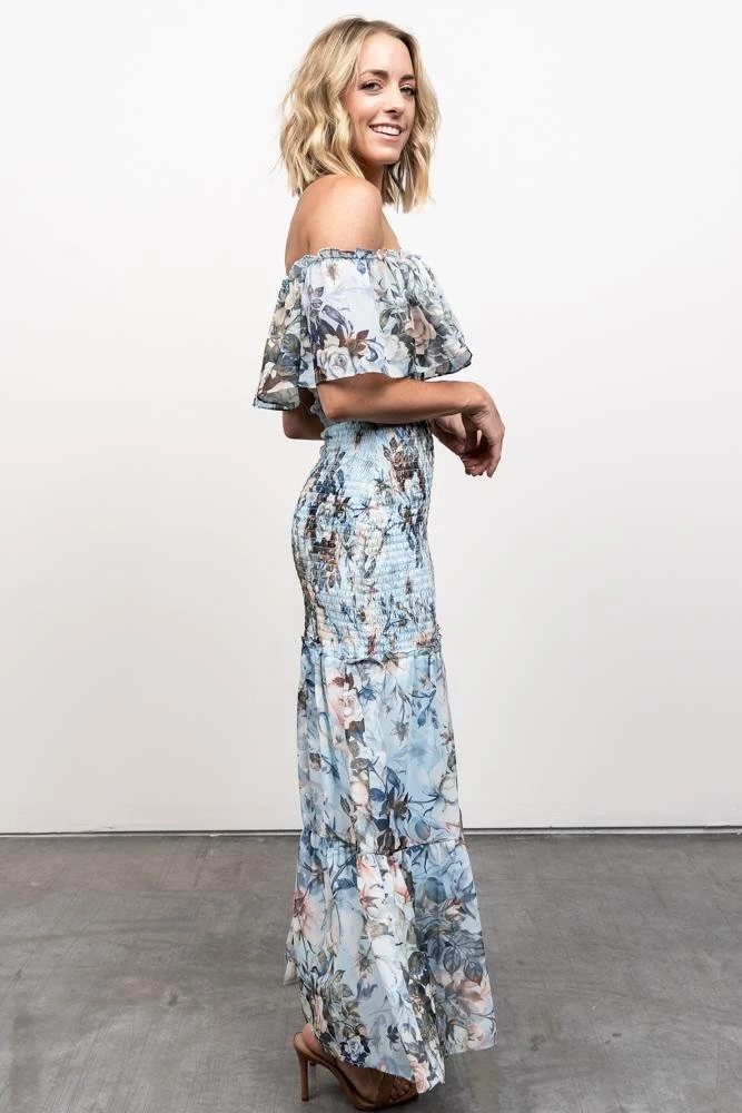 JH Amalfi Smocked Maxi Dress | Blue Floral Dresses