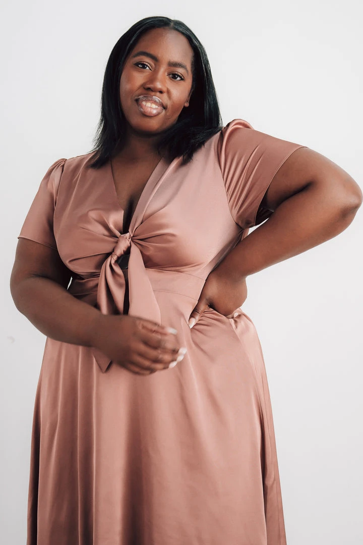 JH Poppy Satin Midi Dress | Rosy Brown