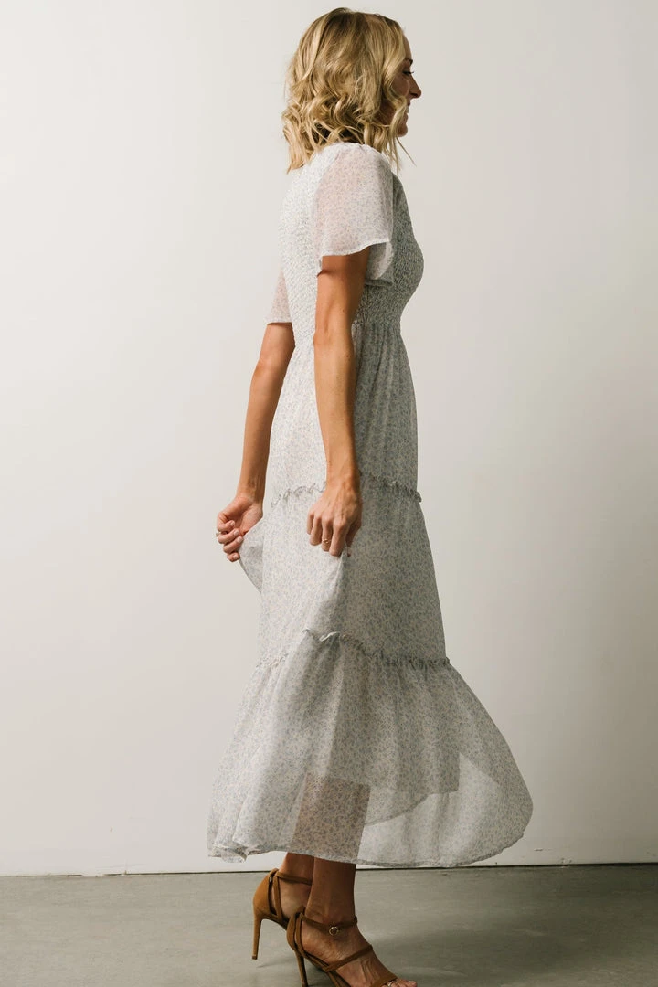 Leilani Tiered Midi Dress | Dusty Blue Floral
