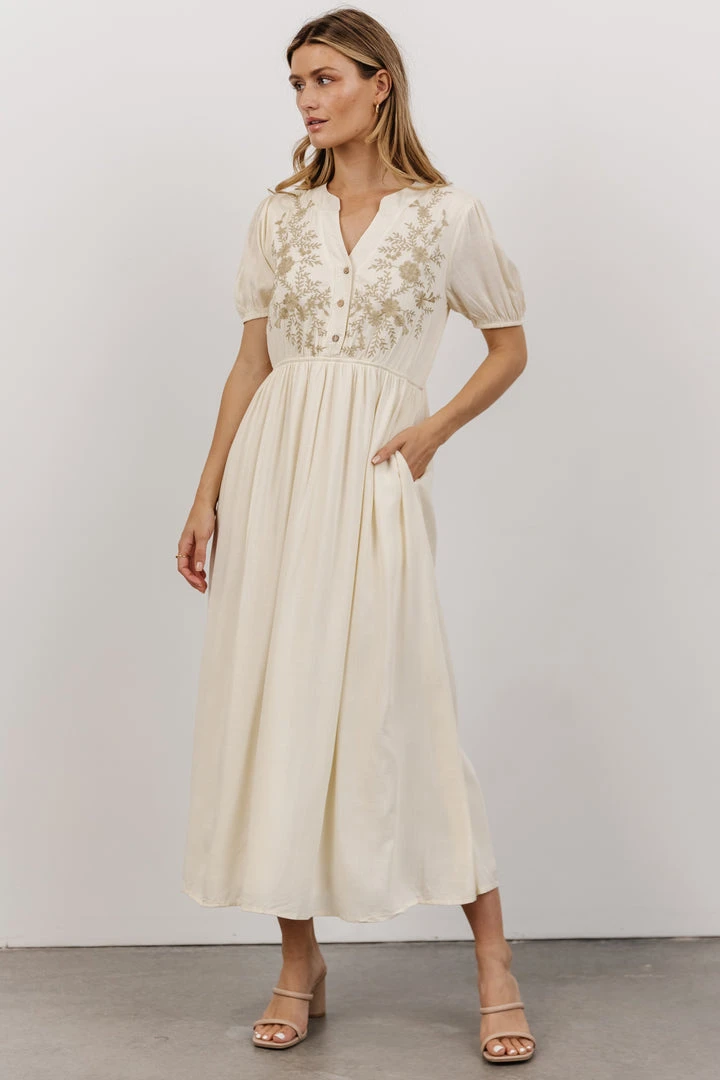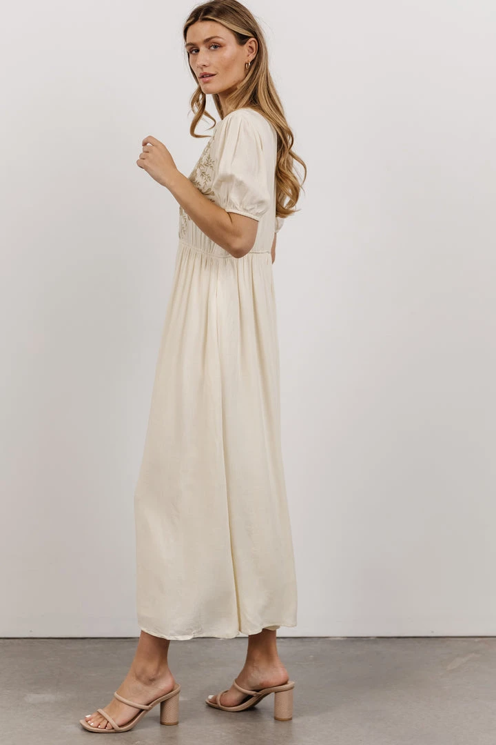 POL Dresses Maven Embroidered Midi Dress | Vintage Cream