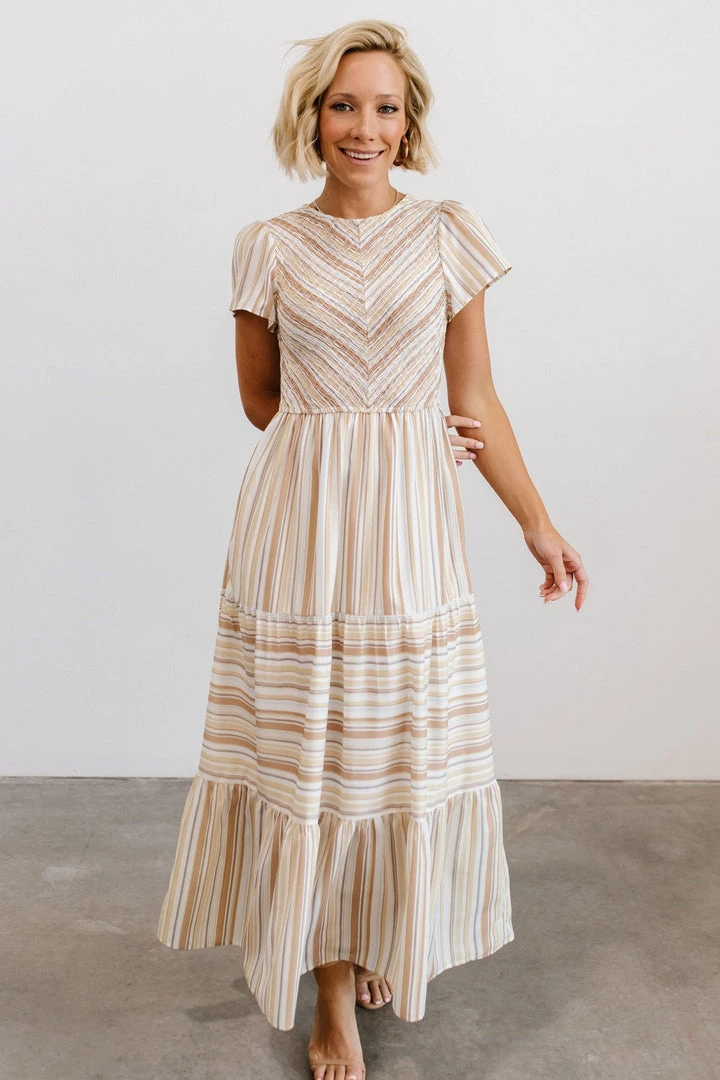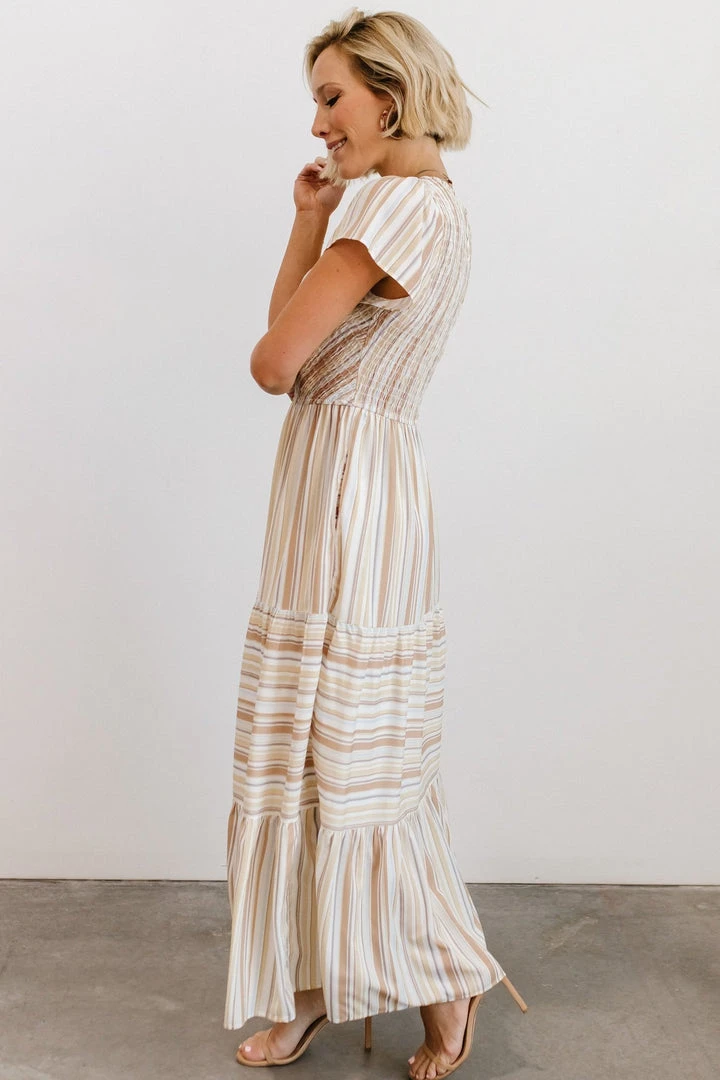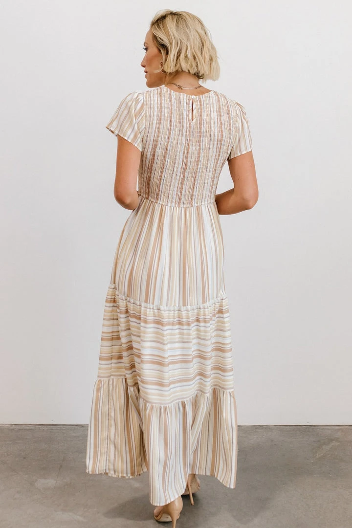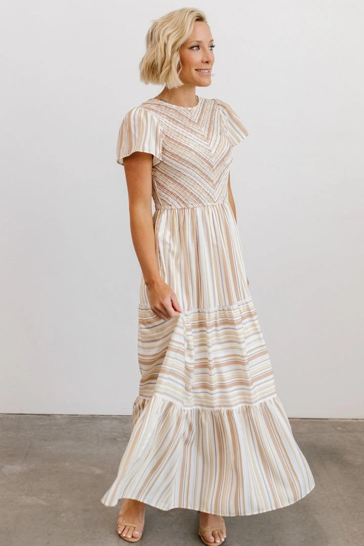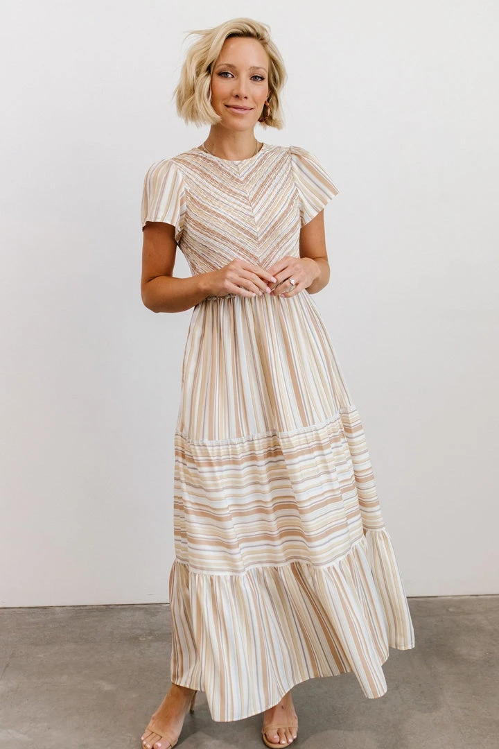 POL Dresses Willow Smocked Maxi Dress | Tan Striped