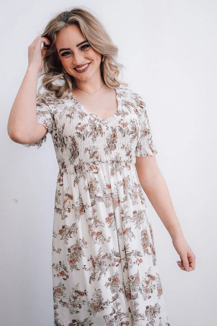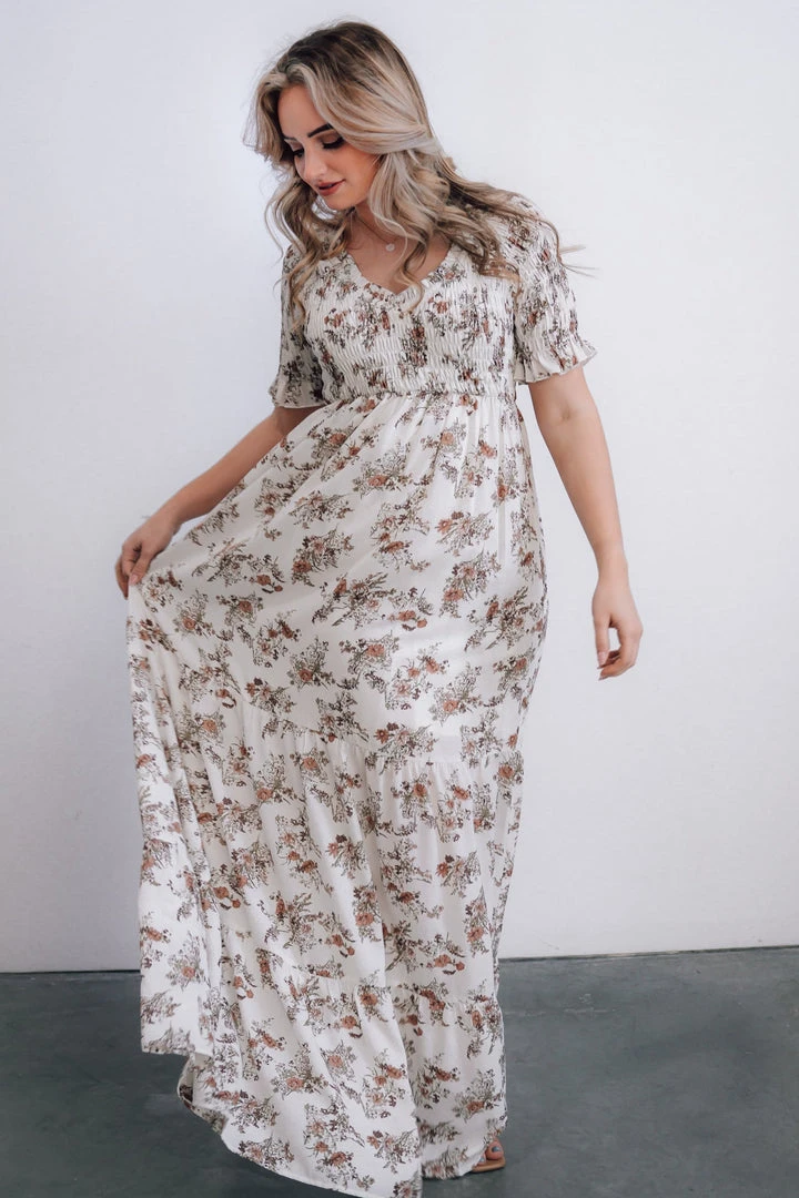 POL Lotta Smocked Maxi Dress | White Floral Dresses