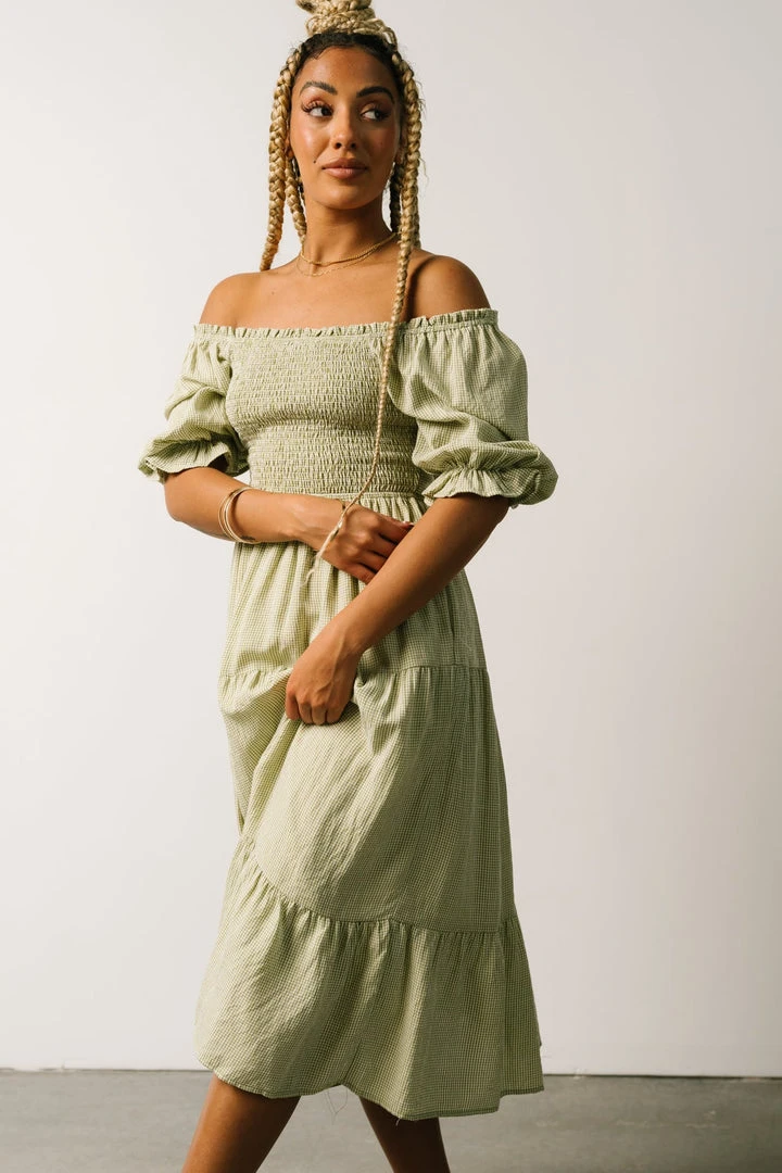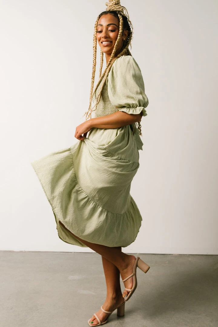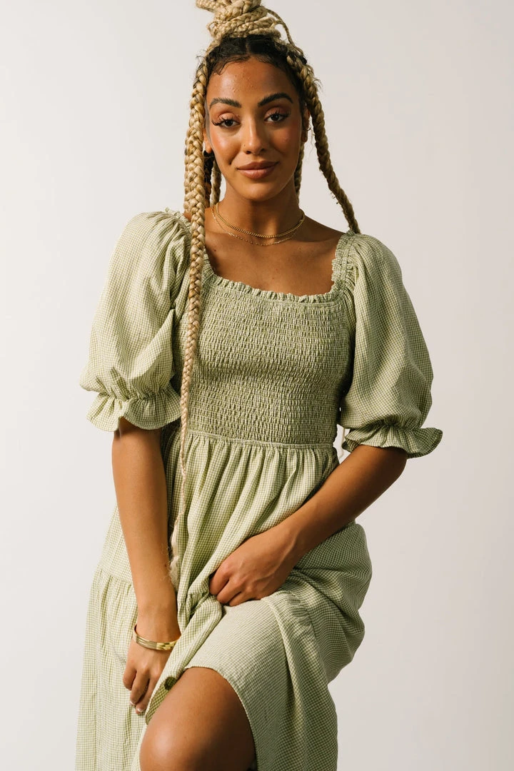 Be the first to review “POL Sariah Smocked Midi Dress | Light Green” Cancel reply