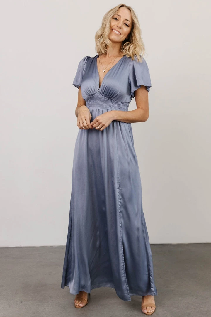 RR Prague Satin Maxi Dress | Blue Dresses