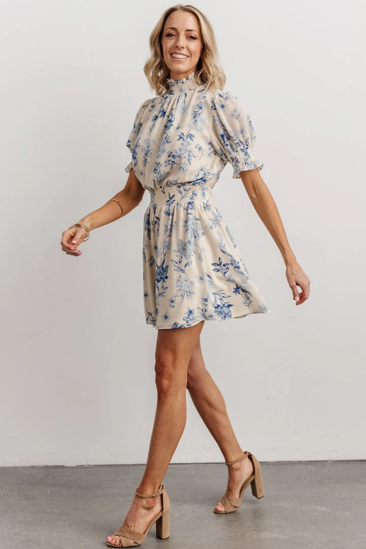 SL Indie Mock Neck Mini Dress | Cream + Blue Floral Dresses
