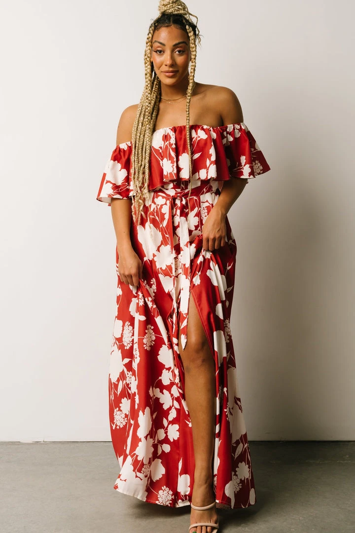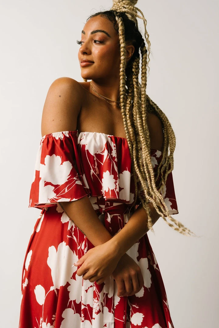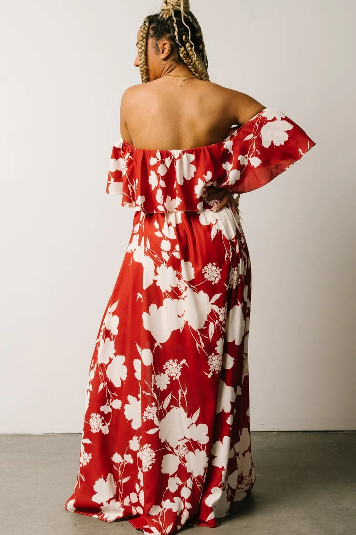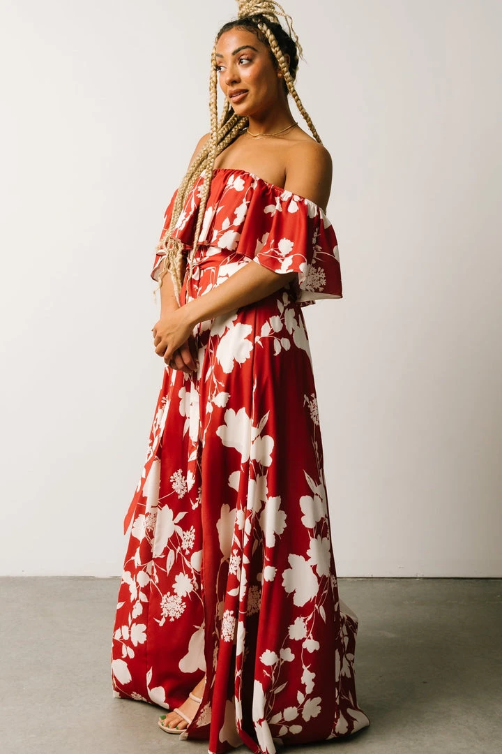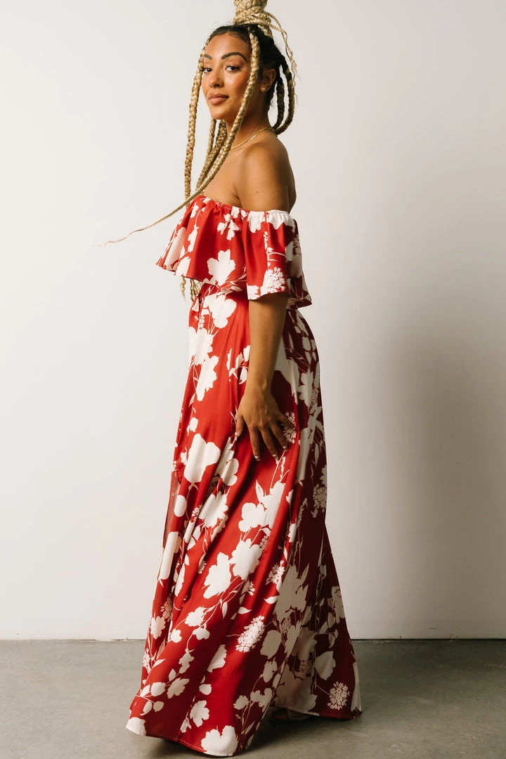 Soi Berlynn Off Shoulder Maxi Dress | Rust + Cream Floral