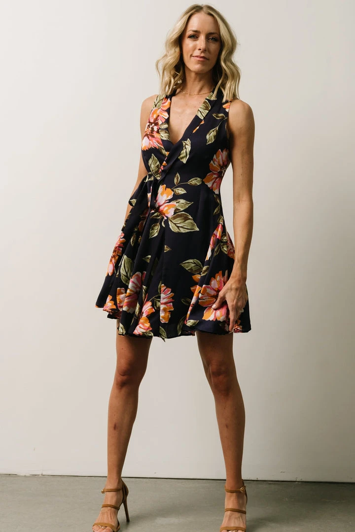 Soi Chrissy Mini Wrap Dress | Navy Floral Dresses