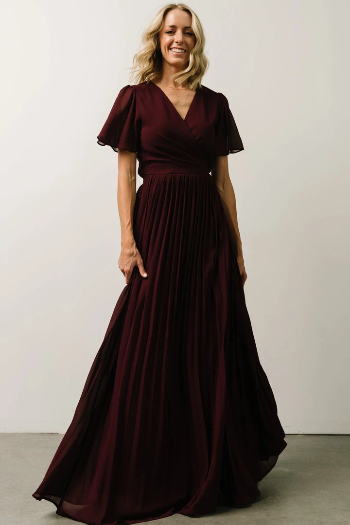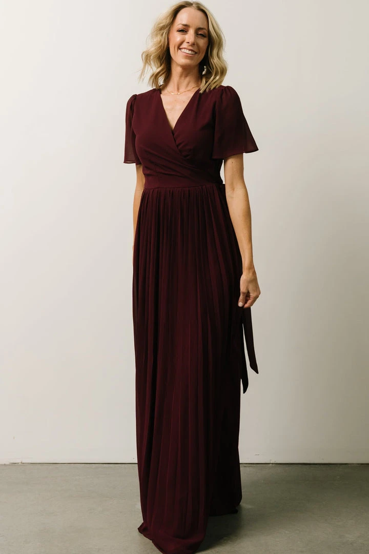 SKU: soi-7759276114085 Categories: Bump friendly, Dresses, Maxi dresses, Shop all, Summer wedding, Wedding Tags: Bridesmaid dress, Color-burgundy, Sleeve-shortsleeve, Style-bump, Style-mob, Style-nursing, Style-pleated, Style-wrap