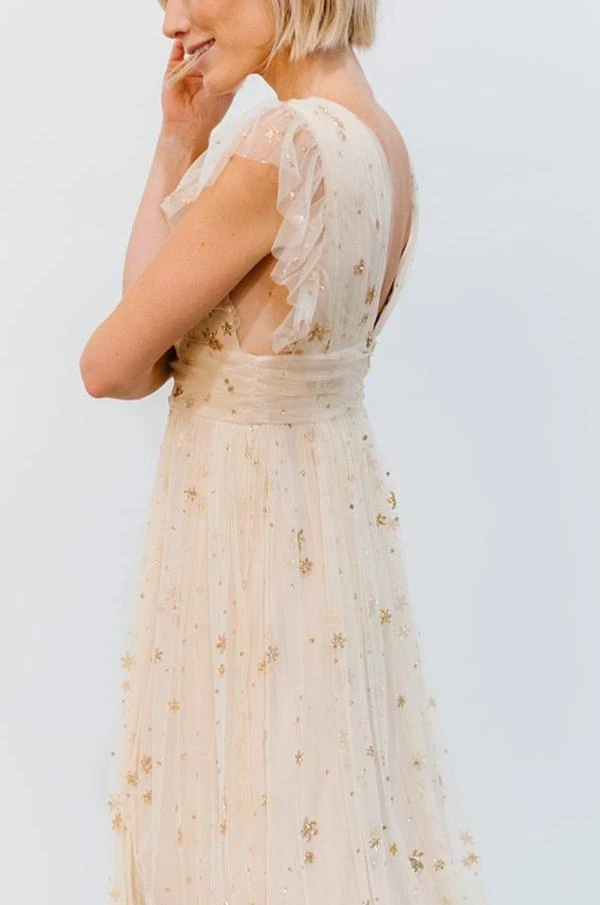 - We recommend maintaining the glitter by keeping the dress in a garment bag or separate from other clothing, as the glitter will shed
